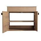 24"30" Bathroom Vanity Bathroom Cabinet Freestanding or Floating w/Vessel Sink Features Net weight of top sink: 37.4lbs Inside depth of top sink: 4.72inch Dual-Purpose Function It provides two installation methods: wall-mounted and floor standing. This dual-purpose "gift" can satisfy any idea of decorating the bathroom. With an adjustable shelf, this bathroom vanity is a classification of daily articles for your bathroom that offers fun storage solutions. Ceramic Single Sink Premium AAA Grade integrated White Ceramic Bathroom Vessel Sink with Smooth, Scratch & Stain-resistant surface which is easy to clean and release your hands. Classification & Silent-Closing This Bathroom Cabinet has 2 soft closed doors and 1 adjustable shelf. It offers a big extra space in the cabinet that allows your items to be sorted more effectively and avoid the mess of daily items. It's worth mentioning that this cabinet collection is equipped with "Silent & Soft-Closing" Hinges. Durable Material Vanity Base is made of High Quality "Eco-Friendly" Plywood that surface material used "Scratch & Water-Resistant" Melamine, which is designed to not only withstand threats of moisture and humidity but also easy to clean and maintain. Reminder: The dresser is not fully assembled, it is recommended that 2 adults complete the assembly. Warm Prompt Due to screen differences, the actual color may vary slightly from what appears on you.The product is sent in two packages. Package includes - 1x Vanity Cabinet; - 1x Ceramic Sink; - 2x Metal Handle; - 4x Metal Feet Package not include Faucet, Pop-up Drain, Drain Assembly, P-Trap, Back-splash and Mounting Bracket are not included. Care/Cleaning and Maintenance: 1. Dust regularly with a soft, dry cloth. 2. Avoid the use of all chemicals, household cleaners, abrasives, or cleaners that contain lemon, vinegar, or other acids that may damage the finish. 3. Excessive exposure to sunlight and extreme changes in temperature and moisture can damage wood furniture. 4. The sink is fragile, please pay attention to maintaining its appearance. 5. Do not place hot appliances, such as curling irons and hot hair dryers directly on the countertop. Specifications: 24 in Item Height:35 in Item Length:24 in Item Width:18.3 in Item Weight:67.1 lb 30 in Item Height:35 in Item Length:30 in Item Width:18.3 in Item Weight:80.3 lb 36 in Item Height:35 in Item Length:36 in Item Width:18.3 in Item Weight:91.3 lb