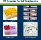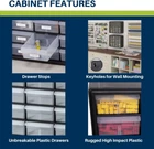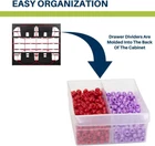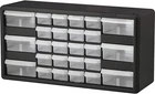 Plastic CABINET DIMENSIONS- 20-Inch x 6-3/8 Inch x 15-13/16 Inch, DRAWER DIMENSIONS- 6-Inch x 4-1/2-Inch x 2-3/16 Inch (large drawer) HIGH QUALITY- Rugged, high-impact polystyrene frame and 24 drawers GREAT FOR– Storing and organizing classroom or office supplies, crafts, bead organizer, art supply storage, or sewing supplies, hardware, lego and small toy storage, fishing gear and more STACK OR WALL MOUNT- Cabinets stack securely and can also be wall mounted using keyhole slots molded into the back of the cabinet DIVIDABLE DRAWERS- 4 drawer dividers included and come molded into the back of the cabinet, finger-grip drawer pulls provide easy access and rear stop tabs prevent contents from spilling Product Description Versatile storage solutions for school, home, garage or office settings. These rugged plastic cabinets will organize and protect your small parts, toy bricks, office supplies, crafts, beads, hardware, fishing, classroom supplies and more. Cabinet stacks securely and has keyhole slots for hanging on a wall. Flexible, strong, see-through drawers feature finger grip drawer pulls. Large drawer inside dimensions: 4-7/8-Inch x 4-1/4-Inch x 2-Inch; small drawer inside dimensions: 5-1/4-Inch x 1-11/16-Inch x 1-1/2-Inch. Keyholes on back for hanging on walls and tabs on top and bottom for secure stacking. Cabinets have 8 small crosswise dividers and 4 large length dividers included. Included dividers are molded into the back of the cabinet (remove with scissors). Additional dividers are sold separately. From the Manufacturer 10124 Cabinet stacks securely and can also be wall mounted with keyhole slots. Clarified polypropylene, dividable drawers offer easy content identification. Finger-grip drawer pulls provide easy access and rear stop tabs prevent contents from spilling. Akro-Mils products save time and money by helping to increase material handling efficiency in virtually any industry. Our broad range of storage, organization and transport products are used to shorten assembly times, maintain accurate inventories, optimize storage space and improve parts protection. Our mission at Akro-Mils is a commitment to manufacturing innovative storage and material handling products of uncompromising quality at a fair price. We support this commitment with professional representation and consistent, superior service to meet the needs of our customers. For quality products backed by more than 60 years of reliable delivery and responsive customer service, we invite you to turn to the Akro-Mils advantage