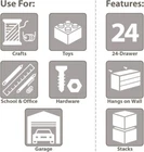 You may also like Rolling Tool Box 5-Drawer Steel Tool Chest & Cabinet Workshop Garage Organizer 187.58 USD Free shipping 16-inch Black Metal Tool Box with Removable Tool Metal Tray Organizer Durable 32.07 USD Free shipping 20-Inch Heavy Duty Steel Tool Box Chest 400 lb Capacity Lockable Organizer 141.31 USD Free shipping 24-Drawer Plastic Drawer Storage Cabinet for Garage Organization, Lego Storage, Teacher Toolbox, Makeup Organizer, and More, 20-Inch W x 6-Inch D x 16-Inch H, Black Color Black 2 Material Polystyrene Frame Material Plastic Product Dimensions 6"D x 20"W x 16"H About this item HEAVY DUTY CABINET WITH 24 DRAWERS: The 24-drawer small storage cabinet is made from rugged, high-impact polystyrene plastic and measures 20" W x 6-3/8" D x 15-3/16" H; The plastic drawers have dimensions of 6" x 4-1/2" x 2-3/16" for ample storage space GARAGE ORGANIZATION: The small cabinet is great for garages and workshops for both homeowners and businesses; The plastic storage drawers can be used as tool box, screw organizer or for battery storage; Keep nails and other small parts accessible CLASSROOM ESSENTIALS: Teachers can use the stackable storage drawers for classroom organization; Use it as a teacher toolbox, art supply storage organizer, craft storage cabinet for scrapbook supplies, and more HOME STORAGE AND ORGANIZATION: This plastic storage cabinet offers many uses around the home; It can be a lego storage organizer, craft organizer, or sticker organizer; Use it for makeup storage and organization or for medicine and first aid supplies CABINET AND DRAWER FEATURES: Stack cabinets securely or wall-mount them using keyhole slots; Finger-grip drawer pulls provide easy access; Rear stop tabs prevent contents from spilling; Drawer dividers are included and molded into the back of the cabinet You may also like Hawkins Hard Anodized Pressure Cooker 1.5L Energy Efficient Kitchen Tool Black 35.19 USD Free shipping Stinger Adjustable Ambidextrous Rifle Shooting Rest for Rifle Shooting Stability 160.19 USD Free shipping Aluminum Pressure Cooker 6 Quart Induction Safe 15PSI Fast Flavorful Meals 47.46 USD Free shipping 7.2 FT Long Inflatables Easter Decorations LED Lighted Blow Up Outdoor Garden 103.06 USD Free shipping Adjustable Transom Saver 23 to 35 Inches Composite Head Holds Engine Roller 44.27 USD Free shipping 4-Tier Rolling File Cart W/Hanging File Organizer Mobile File Cabinet Under Desk 55.09 USD Free shipping 3 Tier Folding Clothes Rack Drying Rack Flip Out Arms 66ft Drying Space Non Slip 48.39 USD Free shipping Light-weight RAD Cycle Bike Stand Portable Floor Rack Bicycle for Small Bikes US 33.24 USD Free shipping 26" La Jolla Cruiser Men'S Bike Bicycles Front Rear Fenders Aluminum Adult Black 187.63 USD Free shipping 5 Shelf Bookcase with Doors Hidden Storage Cabinet Display Bookshelf Home Office 82.98 USD Free shipping Croquet Set 6 Player Mallets Balls Wickets Wooden Stakes Outdoor Game Carry Case 194.99 USD Free shipping 15 Cube Stackable Storage Organizer for Shoes Crafts Hobbies with Wood Shelves 61.82 USD Free shipping