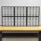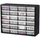 HEAVY DUTY CABINET WITH 24 DRAWERS: The 24-drawer small storage cabinet is made in the U.S.A. from rugged, high-impact plastic and measures 20" W x 6" D x 16" H; Organizer drawers - 6" x 4-1/2" x 2-3/16" GARAGE ORGANIZATION: The small parts organizer is great for garages and workshops for both homeowners and businesses; The plastic storage drawers can be used as tool box, screw organizer or for battery storage; Keep nails and other small parts accessible CLASSROOM ESSENTIALS: Teachers can use the stackable storage drawers for classroom organization; Use it as a teacher toolbox, art supply storage organizer, craft storage cabinet for scrapbook supplies, and more HOME STORAGE AND ORGANIZATION: This plastic storage cabinet offers many uses around the home; It can be a lego storage organizer, craft organizer, or sticker organizer; Use it for makeup storage and organization or for medicine and first aid supplies FEATURES: Stack cabinets securely or use keyhole slots to mount for wall storage; Finger-grip drawer pulls provide easy access; Rear stop tabs prevent contents from spilling; Drawer dividers are included and molded into the back of the cabinet