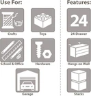You may also like 64-Drawer Plastic Drawer Storage Cabinet Toolbox Garage Organizer Hardware Craft 51.03 USD 54.87 USD Free shipping 7% off Mini Metal Tool Box with 2 Drawers and Top Storage Small Tool Chest Magnetic Tab 40.8 USD 43.87 USD Free shipping 7% off Mini Metal Tool Box with 2 Drawers and Top Storage Chest Magnetic Tab Toolbox 40.8 USD 43.87 USD Free shipping 7% off 44-Drawer Plastic Tool Box Drawer Storage Cabinet for Garage Makeup Organizer 46.03 USD 49.49 USD Free shipping 7% off 24Drawer Plastic Drawer Parts Craft Storage Cabinet for Garage Organizer Toolbox 40.8 USD 43.87 USD Free shipping 7% off Wall-Mounted 30-Compartment Garage Storage Bin Plastic Blocks Hardware Organizer 35.1 USD 37.74 USD Free shipping 7% off Pack-N-Roll Portable Tools Carrier with Telescopic Handle 80 Lb. Load Capacity 36.75 USD 39.52 USD Free shipping 7% off Power Tool Organizer Garage W/ 7 Drill Holders Tool Box Storage Wall Mount Shelf 40.8 USD 43.87 USD Free shipping 7% off 24-Drawer Plastic Drawer Storage Cabinet for Garage Organization, Lego Storage, Teacher Toolbox, Makeup Organizer, and More, 20-Inch W x 6-Inch D x 16-Inch H, Black Color Black 2 Material Polystyrene Frame Material Plastic Product Dimensions 6"D x 20"W x 16"H About this item HEAVY DUTY CABINET WITH 24 DRAWERS: The 24-drawer small storage cabinet is made from rugged, high-impact polystyrene plastic and measures 20" W x 6-3/8" D x 15-3/16" H; The plastic drawers have dimensions of 6" x 4-1/2" x 2-3/16" for ample storage space GARAGE ORGANIZATION: The small cabinet is great for garages and workshops for both homeowners and businesses; The plastic storage drawers can be used as tool box, screw organizer or for battery storage; Keep nails and other small parts accessible CLASSROOM ESSENTIALS: Teachers can use the stackable storage drawers for classroom organization; Use it as a teacher toolbox, art supply storage organizer, craft storage cabinet for scrapbook supplies, and more HOME STORAGE AND ORGANIZATION: This plastic storage cabinet offers many uses around the home; It can be a lego storage organizer, craft organizer, or sticker organizer; Use it for makeup storage and organization or for medicine and first aid supplies CABINET AND DRAWER FEATURES: Stack cabinets securely or wall-mount them using keyhole slots; Finger-grip drawer pulls provide easy access; Rear stop tabs prevent contents from spilling; Drawer dividers are included and molded into the back of the cabinet You may also like 4 Shelf Closet Organizer Clothes Storage 2 Collapsible Bins Metal Frame Bedroom 35.86 USD 38.56 USD Free shipping 7% off 1.3 Gallon Plastic Aerated Bait Bucket with Aerator for Saltwater Freshwater 39.47 USD 42.44 USD Free shipping 7% off Balsam Cedar Scented Candle Premium Soy Wax Long Lasting Fragrance 40-65hrs New 15.47 USD 18.96 USD Free shipping 18% off 3-Wick Juicy Watermelon Scented Candle Decorative Glass Jar 65 Hour Burn New 9.25 USD 11.34 USD Free shipping 18% off Ergonomic Computer Office Video Game Chairs Massage PU Leather Chair Adjustable 146.45 USD 157.47 USD Free shipping 7% off Rechargeable LED Flashlight and Work Light Bright Everday Carry & Camping New 97.96 USD 105.33 USD Free shipping 7% off Steel Target for Shooting 1/2" Thick Gong Silhouette Metal Target Laser Cut New 44.07 USD 47.39 USD Free shipping 7% off 20V MAX* POWERCONNECT Cordless Drill Kit 100 Pc. Kit 24-Position Clutch 60.25 USD 64.78 USD Free shipping 7% off Office Chair PU Leather Desk Gaming Chair High Back Racing Height Adjustable 135.43 USD 145.62 USD Free shipping 7% off 4 Pieces Outdoor Rattan Chair Wicker Sofa Patio Garden Conversation Bistro Sets 181.32 USD 194.97 USD Free shipping 7% off 2-Tier Metal Countertop Fruit Wire Storage Basket Kitchen Pantry Organization 40.8 USD 43.87 USD Free shipping 7% off Mountain Bike 24 Inch Wheels Adult 18 Speeds Suspension Fork Steel Frame Grey 155.68 USD 167.4 USD Free shipping 7% off