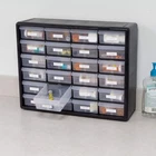 HEAVY DUTY CABINET WITH 24 DRAWERS: The 24-drawer small storage cabinet is made in the U.S.A. from rugged, high-impact plastic and measures 20" W x 6" D x 16" H; Organizer drawers - 6" x 4-1/2" x 2-3/16" GARAGE ORGANIZATION: The small parts organizer is great for garages and workshops for both homeowners and businesses; The plastic storage drawers can be used as tool box, screw organizer or for battery storage; Keep nails and other small parts accessible CLASSROOM ESSENTIALS: Teachers can use the stackable storage drawers for classroom organization; Use it as a teacher toolbox, art supply storage organizer, craft storage cabinet for scrapbook supplies, and more; Drawers are safe for polymer clay HOME STORAGE AND ORGANIZATION: This plastic storage cabinet offers many uses around the home; It can be a lego storage organizer, craft organizer, or sticker organizer; Use it for makeup storage and organization or for medicine and first aid supplies FEATURES: Stack cabinets securely or use keyhole slots to mount for wall storage; Finger-grip drawer pulls provide easy access; Rear stop tabs prevent contents from spilling; Drawer dividers are included and molded into the back of the cabinet On Jul 24, 2025 at 02:50:28 PDT, seller added the following information: