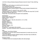 Product Description 2.4G Mini Wireless Keyboard Remote Control for Smart TV Box USB Plug Features: Analog cursor which makes your positioning click more precise. 2.4G transmission up to 10m. Plug and play, and free from installing driver. Specially designed for Android system to realize human-computer interactions comprehensively. Applicable to: Smart TV, Android TV box, mini PC, HTPC. Supports System: Linux, Android 2.x, Android 4.x, Win 2000, Win vista, Win7 32, Win7 64, Win8 32, Win8 64, MAC OS X. Please Note: This version does not support voice capabilities. Specifications: Product Name: Remote Control Material: Plastic + Silicone Color: Black Product size: approx. 150x 36 x 20 mm/5.91 x 1.41 x 0.79in Interface: USB2.0 Bluetooth Version: No Wireless: 2.4G Wireless Back-lit: NO Operation Distance: 10m Key Force: Soft Powered by: 2 * AAA Battery (Not included) Quantity: 1 Set (other accessories demo in the picture is not included) Note: 1.Transition: 1cm=10mm=0.39inch 2.Please allow 0-1cm error due to manual measurement. pls make sure you do not mind before you bid. 3.Due to the difference between different monitors, the picture may not reflect the actual color of the item. Thank you! Package included: 1 X Remote Control (not including the battery) (No retail package) About Us Shipping Terms Returns Contact Us About Item All items sold by us are being described to the best of our abilities, as accurate as possible, and with utmost conscientiousness on our part. However, to avoid any potential oversights, I respectfully request your assistance in helping us to make this a mutually satisfactory transaction by THOROUGHLY reviewing item description and photos, and asking all questions PRIOR TO BIDDING. Customer Satisfactory 1.We back our commitment with superb service, 100% full money back and a customer satisfaction guarantee. 2.I am here and ready to assist you with any questions or concerns you might have before or after the purchase. 3.My goal is to make sure you are a happy customer and pleasant shopping with us. Feedback If you are satisfied with the purchase and our total service, your comment is very important in our business success. Please take a minute to leave us a positive feedback with an overall Detailed Selling Rating (DSR) of 5. Our eBay account setup auto feedback, so eBay system gives you automatically Positive feedback back after your positive feedback left. IF YOU PLAN TO GIVE US A NEUTRAL/NEGATIVE FEEDBACK OR OPEN EBAY/PAYPAL CASE, PLEASE WRITE TO US IMMEDIATELY SO THAT WE CAN DO OUR BEST TO RESOLVE YOUR PROBLEM. United States Buyers Same business day free shipping within United States All orders will be shipped through USPS First Class, UPS and Fedex depends on the weight of the items. Shipping Time Usually ,Parcel will be delivered 2-5 working day include Handling time. Sometimes shiping time may has a little delay, such as Bad wether,Holidays We stand behind everything that we sell and will do everything possible to assure you are satisfied. When you receive your purchase if you are not 100% satisfied, please sent me ebay message and we will do our best to make you happy. If you still want to return your purchase, simply ship the item(s) back to us and we will refund your original purchase price and the original shipping charge. Buyers are responsible for the postal cost of returning the items. We must be notified of the intent to return your item within 30 days of receiving the item. Items returned must be in the same condition that they were received. How to return 1,Please ask us for return address . 2,Shipping back the package . The RMA#(Return Merchant Authorization Number = Your ebay ID) must be clearly written on the return package ,Otherwise the package will be refused. 3,Sent us the return tracking number. 4,All returns will be inspected prior to a credit being issued. 1:Returns are accepted within 60 days of purchase. 2:All returned items MUST BE in the original packaging. 3:We will be happy to assist you if if any item needs to be returned or replaced 4:Please don't open a return request before contacting us first to solve, many thanks. Sent ebay message in English If you have any questions, our Customer Service staffs welcome you to sent me ebay message. We strive to answer all questions and resolve any problems as quickly as possible. Business Hours: Monday-Saturday 9:00-17:00 About Us About Item All items sold by us are being described to the best of our abilities, as accurate as possible, and with utmost conscientiousness on our part. However, to avoid any potential oversights, I respectfully request your assistance in helping us to make this a mutually satisfactory transaction by THOROUGHLY reviewing item description and photos, and asking all questions PRIOR TO BIDDING. Customer Satisfactory 1.We back our commitment with superb service, 100% full money back and a customer satisfaction guarantee. 2.I am here and ready to assist you with any questions or concerns you might have before or after the purchase. 3.My goal is to make sure you are a happy customer and pleasant shopping with us. Feedback If you are satisfied with the purchase and our total service, your comment is very important in our business success. Please take a minute to leave us a positive feedback with an overall Detailed Selling Rating (DSR) of 5. Our eBay account setup auto feedback, so eBay system gives you automatically Positive feedback back after your positive feedback left. IF YOU PLAN TO GIVE US A NEUTRAL/NEGATIVE FEEDBACK OR OPEN EBAY/PAYPAL CASE, PLEASE WRITE TO US IMMEDIATELY SO THAT WE CAN DO OUR BEST TO RESOLVE YOUR PROBLEM. Shipping United States Buyers Same business day free shipping within United States All orders will be shipped through USPS First Class, UPS and Fedex depends on the weight of the items. Shipping Time Usually ,Parcel will be delivered 2-5 working day include Handling time. Sometimes shiping time may has a little delay, such as Bad wether,Holidays Term