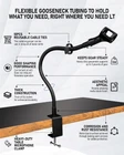 DESIGNED FOR EVERY USER - Our gooseneck desktop mic stand is a versatile companion suitable for various usage scenarios. Whether you're podcasting, recording music, delivering speeches, conducting meetings, or teaching lectures, this stand has got you covered. It adapts seamlessly to different environments, making it ideal for podcasters, musicians, educators, content creators, and professionals seeking exceptional audio performance. THE REINFORCED HEAVY-DUTY GOOSENECK has a thick of 0.6 inches and is available in multiple lengths: 6, 9, 13, 19, and 24 inches. Both ends feature standard 5/8-27 male and female threads. Made of high-quality carbon steel wire, it boasts excellent durability, high strength, good shaping performance, can be bent at will, does not rebound, and is noiseless. The matte black surface, achieved through a baking paint process, is corrosion-resistant, rust-proof, and aesthetically pleasing. MAXIMUM EQUIPMENT SUPPORT AND ADAPTER INCLUSION - With a maximum weight capacity of 3 pounds, our gooseneck stand can securely hold various microphone setups. We also include a 5/8-27" to 3/8-16" screw adapter, allowing compatibility with microphones featuring different screw hole sizes. This ensures that you can use a wide range of microphones with our stand, enhancing its versatility and convenience. DOUBLE RUBBER PAD PROTECTION - These fantastic and extremely low-profile flat-surface clamps are perfect for attaching to podiums, tables, desks, and piano bars. They fit surfaces up to 60 mm (2.36 inches) thick. The brace and screw-in mount are both padded to prevent scratches or imprints on the desk material. They effectively cancel out sharp noises and reduce vibrations. (This c-bracket is especially friendly to plexiglass and acrylic lecterns, and will not be subject to any scratches.) COMPREHENSIVE PACKAGE AND CABLE MANAGEMENT - When you purchase our gooseneck mic stand, you'll receive a complete package that includes everything you need. The package consists of a 24-inch gooseneck microphone arm stand with a desk clamp, a 5/8" to 3/8" screw adapter, a microphone clip holder, and 10 cable ties. The cable ties assist in effective cable management, keeping your setup neat and organized for optimal performance.