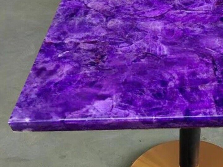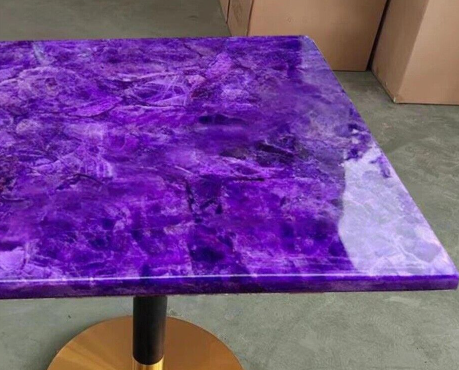 Table Size: 24"x24" Inches Shape: Round 1. This versatile table top can serve as a dining table, guest table, coffee table, center table top in showrooms, and as a gift for your loved ones. 2. The table top is fully handmade in Agra, India. 3. We offer free door-to-door delivery of the table top via FedEx or DHL. 4. Any local taxes, customs duties, or VAT will be the buyer's responsibility at the destination. 5. We ensure safe delivery by dispatching the parcel with proper packing and full insurance coverage against all risks. 6. Maintenance of the table top is simple with soap and water and a dry cotton cloth. 7. If you require a customized design, size, or shape, please let us know, and we will create it for you. 8. Please note that this is only a tabletop, and the base/leg is not included. About Amethyst Table Tops: Aesthetics: Amethyst tabletops are known for their unique and stunning appearance. Each agate stone has its own distinct patterns and color variations, which can create a beautiful and eye-catching focal point in any room. Durability: Amethyst is a relatively hard and durable material, making it ideal for use in tabletops. It is resistant to scratches, dents, and other forms of wear and tear, which makes it a practical choice for a high-traffic area. Healing properties: Some people believe that agate has healing properties, such as promoting balance, harmony, and peace. Having an agate tabletop in your home or workspace may help create a calming and soothing atmosphere. Versatility: Amethyst tabletops can be used in a variety of settings, from rustic or bohemian to modern or contemporary. They can be paired with different types of furniture, such as wood, metal, or glass, to create a unique and personalized look. Maintenance: Amethyst tabletops are relatively easy to maintain and clean. It is recommended to wipe the surface regularly with a damp cloth and avoid using harsh chemicals or abrasive cleaners. In conclusion, Amethyst tabletops are a beautiful and unique way to add a touch of elegance and sophistication to any room. With their durability, versatility, and healing properties, an agate tabletop can serve both decorative and functional purposes for years to come. Thanks for Visiting...