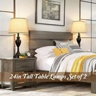 24" Tall Table Lamps with 2 USB Charging Ports, Farmhouse Rustic Black Product Details Finish Type: metal Base Material: Metal Bulb Base: E26 Product Dimensions: 12.2"D x 12.2"W x 24"H Lamp Type: Table Lamp Shade Color: Beige Shade Material: Fabric Switch Type: Pull Chain Style: Farmhouse & Vintage & Modern Brand: Sucolite Color: Black Special Feature: Rechargeable Light Source Type: LED, CFL, Incandescent Material: Metal Room Type: Office, Bedroom, Living Room, Study Room Recommended Uses For Product: Reading, Decoration Power Source: Corded Electric Connectivity Technology: USB Is Waterproof: False Mounting Type: Tabletop Wattage: 100 watts Number of Items: 2 Lighting Method: Incandescent, LED, CFL Control Method: Touch Specific Uses For Product: Indoor use only Water Resistance Level: Not Water Resistant Installation Type: Tabletop Number of Pieces: 2 Connectivity Protocol: Homeplug Voltage: 120 Volts Manufacturer: Sucolite Part Number: FHK23034A Item Weight: 6.21 pounds Country of Origin: China Item model number: FHK23034A Finish types: metal Special Features: Rechargeable Batteries Included?: No Batteries Required?: No Product Dimensions : 12.2 x 12.2 x 24 inches; 6.22 Pounds Item model number : FHK23034A Manufacturer : Sucolite Country of Origin : China Finish Type: metal Base Material: Metal Bulb Base: E26 Product Dimensions: 12.2"D x 12.2"W x 24"H Lamp Type: Table Lamp Vintage Style & Wide Application: The lamp body is uniquely shaped in classic black finish, adding a touch of vintage elegance. The fabric beige shade complements the rustic flair, making the whole lamp an attractive and decorative piece. Perfect home decor for spaces including bedrooms,living rooms, dorms, office, nursery, bedside nightstands, sofa tables etc Dual USB Charging Ports: Each bedside lamp is built with dual 5V/2.1A USB charging ports which work well whether the lamp is turned on or off. This feature offers great convenience, allowing you to charge multiple electronic devices such as your phone, iPad, Kindle, diffuser, Apple Watch, or tablet without requiring additional wall outlets High Quality: Crafted from premium metal, the body of the farmhouse table lamp is fashioned to achieve an enhanced finish, resistant to both corrosion and rust. Its stable and robust base ensures no risk of toppling or swaying. The exquisite fabric shade produces a soft and relaxing ambiance, creating a soothing atmosphere that protects your eyes E26 Base Bulbs Required: The nightstand lamps is equipped with a standard E26 socket and is compatible with a variety of E26 bulbs, including incandescent bulbs, LED bulbs and CFL, with a maximum wattage of 100W (bulb not included). You can choose different light bulbs based on the occasion to create your desired lighting effect E26 Base Bulbs Required: The nightstand lamps is equipped with a standard E26 socket and is compatible with a variety of E26 bulbs, including incandescent bulbs, LED bulbs and CFL, with a maximum wattage of 100W (bulb not included). You can choose different light bulbs based on the occasion to create your desired lighting effect