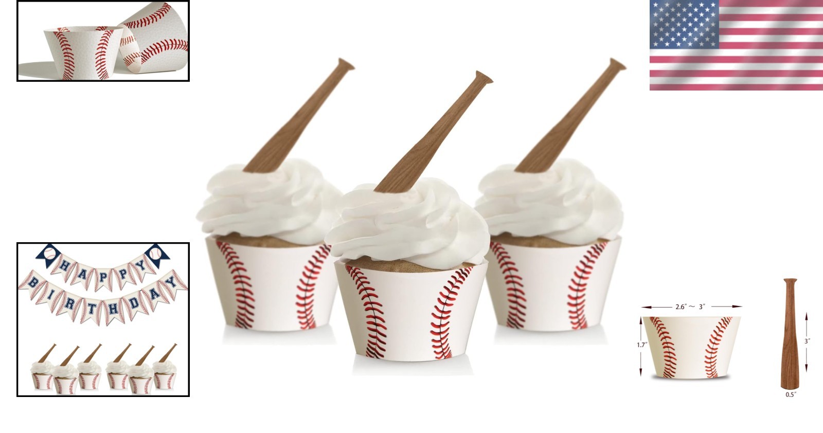 24PCS Baseball Cupcake Wrappers & Bat Toppers - Perfect for Sports Events ‹ › ‹ › ‹ › ‹ › ‹ › ‹ › ‹ › 24PCS Baseball Cupcake Wrappers & Bat Toppers Perfect for Sports Events Package Includes: 24 Pack baseball cupcake wrappers 24 Pack baseball bat cupcake toppers Material: Crafted from high-quality 300g paper. White wrappers adorned with red laces graphics—simple yet charming. Ideal for sports-themed birthday parties, baseball parties, or any celebration centered around the excitement of baseball. Product Size: Cupcake wrappers: 2.6-3" width x 1.7" height - Fits most regular size cupcakes. Baseball bat toppers: 0.5" width x 3" height. Special Design: Effortless assembly: Simply slide the tab into the slot to create your wrapper—no glue or tape required. Each wrapper is designed with three slots to accommodate different cupcake sizes. Please Note: These wraps are bottomless, not cups. Use a plain liner to bake in, then place your cupcake inside the wrapper for an elegant presentation. Packing and Shipping: Each set is neatly packaged in a cellophane bag and shipped flat for convenience. Why Choose Our Baseball Cupcake Set? Elevate your sporting event celebrations with our delightful Baseball Cupcake Wrappers & Bat Toppers! The perfect blend of functionality and aesthetic appeal, you can create a professional look that will impress your guests. Easy to assemble and adaptable to any cupcake size, these wrappers ensure your treats look as fantastic as they taste. Express your passion for baseball at your next event. Order now and take your cupcake presentation to the next level! Shipping Free & Fast Shipping - We offer free shipping to most of the USA with a normal delivery time of 3-7 days. However, due to the current situation, additional delivery time (up to 3 weeks) may be required for some items. Alternative Carriers - We may use alternative carriers (e.g. USPS, FedEx, UPS, etc.) to ensure your package arrives safely and on time. Due to the use of multiple carriers, we are unable to provide a tracking number automatically. Handling Time - Orders are processed and shipped within 1-2 business days of receiving cleared payment. Shipping Restrictions - Shipping to Alaska, Hawaii, Puerto Rico, Guam, and other US territories may incur shipping charges or delivery restrictions. Please contact us before ordering, or your order can be refunded/cancelled. State Restrictions - There may be restrictions based on your state of purchase. For example, certain items may not be shipped to California due to state regulations. Contact for Tracking Updates - If you require tracking updates or have any concerns about the delivery of your order, please feel free to contact us, and we will be happy to assist you. Return 30-Day Hassle-Free Returns - We want you to be completely satisfied with your purchase. If you are not, you can return the item within 30 days of receiving it for a full refund or exchange. Easy Return Process - To start a return, simply contact us and we will provide you with a prepaid return shipping label and detailed instructions. Restocking Fee - There are no restocking fees for returns. However, the buyer is responsible for return shipping costs if the return is not due to a seller's error. Refund Processing Time - Refunds will be processed within 5 business days of receiving the returned item in its condition. Payment We accept all major credit cards, PayPal, and Apple Pay for your convenience. Your payment information is secure and encrypted to ensure a safe and seamless transaction. Please complete your payment within 3 days of purchase to avoid any delays in shipping. Feedback Your feedback is extremely important to us. We strive to provide the best products and customer service possible. If you are satisfied with your purchase, please take a moment to leave us a positive review. If you have any concerns or issues with your order, please contact us before leaving negative feedback. We are committed to resolving any problems and ensuring your satisfaction. Contact Us If you have any questions or concerns, please feel free to out to our customer support team. You can contact us through the eBay messaging system. We are available Monday to Friday, 9:00 am to 5:00 pm EST, and we will do our best to respond to your inquiry within 24 hours. Buy it now and enjoy a pleasant shopping experience! Unit Quantity: 48.0 Material: Paper,300g paper,cardstock,disposable Type: Cupcake Wrapper Occasion: Party Color: White Theme: Baseball Style: Sports Origin: Not Specified