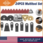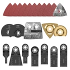 ⚙️【Oscillating Saw Blades Sets】These oscillating saw blades kit includes 10 Pcs Multitool Bi-Metal Blades, This set of tools can basically meet all your needs, they can help you solve a variety of home repair or renovation work, perfect for wood/plastic/plaster/metal cutting and polishing, allowing you to work more finely and efficiently. ⚙️【Premium Multitool Blades】 This multi tool blades kit is made of high-quality, thick gauge, bi-meta steels , which have been processed using special technology to ensure excellent wear resistance and long service life for each oscillating tool blade. ⚙️【Precision Cutting Oscillating Tool】 These oscillating saw blades have built-in length markers on two sides, one side is "inch" and the other is "centimeter", ensure that you can get precise cuts easily and quickly while using it. 2 kinds of special design precision saw blades have a longer wavy tooth that is specifically designed to provide faster, cleaner cuts in wood and plastic, metal. Package Included: 24pcs Oscillating Blades Set As Picture Shown