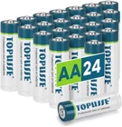 ✅【Long LASTING POWER】Topusse ultra alkaline batteries deliver long lasting power and performance,that is consistent and reliable for everyday use and emergency situations ✅【10-YEAR SHELF LIFE】 All alkaline batteries are always fresh and maintain power with an impressive ten-year shelf life in proper storage, Providing power in everything from emergency situations to playtime ✅【LEAKPROOF DESIGN】AA batteries are designed with a double layer internal structure housed within a stainless steel cover so that they are 100% leakproof. Avoid short circuits, mixing and matching old batteries with new ones. ✅【ENVIRONMENTALLY CONSIDEREDE】Our 1.5-volt alkline batteries contain no mercury or cadmium, making them a smart choice for your family and for the environment. ✅【IDEAL FOR EVERYDAY USE】These batteries are compatible with all devices that require 1.5V AA batteries for daily household devices such as game controllers, remote controls, and children's toys, and so on. Topusse alkaline aa batteries are great to have on hand for a variety of everyday household devices, including clocks, remote controls, game controllers, digital cameras, toys and more. batteries won't leak and are designed to last ten years in storage. The 1.5-volt batteries contain no mercury or cadmium, making them a smart choice for your family and for the environment. our mission is to provide trusted and dependable power for everyday needs