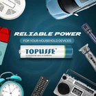 ✅【Long LASTING POWER】Topusse ultra alkaline batteries deliver long lasting power and performance,that is consistent and reliable for everyday use and emergency situations ✅【10-YEAR SHELF LIFE】 All alkaline batteries are always fresh and maintain power with an impressive ten-year shelf life in proper storage, Providing power in everything from emergency situations to playtime ✅【LEAKPROOF DESIGN】AAA batteries are designed with a double layer internal structure housed within a stainless steel cover so that they are 100% leakproof. Avoid short circuits, mixing and matching old batteries with new ones. ✅【ENVIRONMENTALLY CONSIDEREDE】Our 1.5-volt alkline batteries contain no mercury or cadmium, making them a smart choice for your family and for the environment. ✅【IDEAL FOR EVERYDAY USE】These batteries are compatible with all devices that require 1.5V AAA batteries for daily household devices such as game controllers, remote controls, and children's toys, and so on. Topusse alkaline aaa batteries are great to have on hand for a variety of everyday household devices, including clocks, remote controls, game controllers, digital cameras, toys and more. batteries won't leak and are designed to last ten years in storage. The 1.5-volt batteries contain no mercury or cadmium, making them a smart choice for your family and for the environment. our mission is to provide trusted and dependable power for everyday needs.