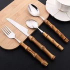 This 24-piece bamboo tableware set includes cutlery perfect for dining occasions. The set features a natural design with stainless steel elements, combining a rustic touch with modern durability. Ideal for use in the kitchen or dining room, this set provides a complete dining solution for individuals or small gatherings. The bamboo material offers an eco-friendly alternative to traditional tableware, while the stainless steel components ensure longevity and ease of maintenance. Perfect for adding a stylish and sustainable touch to your dining experience.