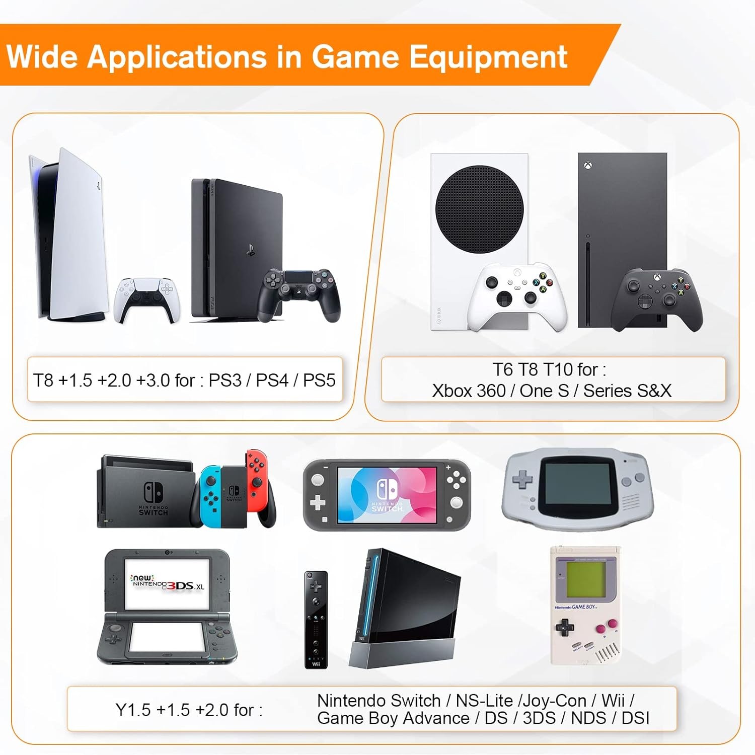 JOREST 24Pcs Small Precision Screwdriver Set with Torx T5 T6 T8 T9, Colorful Product Details Brand: Jorest Number of Items: 24 Head Style: Torx Material: Chrome Vanadium Steel Aci Color: Colorful Special Feature: Magnetic Tip Model Name: Precision Screwdriver Manufacturer: JOREST Part Number: AJJOJM0301ORDDER1S Item Weight: 3.52 ounces Package Dimensions: 8.7 x 4.69 x 0.75 inches Country of Origin: China Item model number: AJJOJM0301ORDJPR1S Style: 24 in 1 Special Features: Magnetic Tip Batteries Included?: No Batteries Required?: No Brand: Jorest Number of Items: 24 Head Style: Torx Material: Chrome Vanadium Steel Aci Color: Colorful 【Precision screwdriver set】-- 24Pcs precision screwdriver set includes 20Pcs CRV screwdriver bits which are phillips +1.5(PH000) +2.0(PH00) +3.0(PH0), flathead -1.0 -1.5 -2.0, torx T1 T2 T3 T4 T5, torx security TR6 TR8 TR9 TR10 TR15, triwing Y0.6(Y000) Y1.5(Y00), pentalobe 0.8(P2) 1.2 (P5), with a screwdriver handle, a double-ended spudger, a triangle spudger, and a SIM card thimble. 【Wide application】-- P2 Y0.6 +1.5 +2.0 are used for iPhone 7/8/X/XR/11/12/13, for their screens and batteries replacement only. T8 +1.5 +2.0 +3.0 are used for PS3/PS4/PS5. T6 T8 T10 are used for Xbox 360/Series S&X. Y1.5 +1.5 +2.0 are used for Switch/Joy-Con/Wii. T6 T15 are used for Ring Video Doorbell/Video Doorbell 2/Pro/Elite. T8 is suitable for Folding knife. T3 T5 T6 T8 +1.5 +2.0 P5 are used for Macbook Air and Pro. -1.0 -2.0 +1.5 +2.0 +3.0 are used for Computer/ Watch/Glasses. 【Slip-resistant rotatable handle】-- The screwdriver handle is made of TPR and PP materials, with a special non-slip design, offering a sense of comfortable. The top of the handle is rotatable design which makes it more convenient to remove the screws; the handle head has magnetic adsorption which can quickly replace the screw head. 【CR-V screwdriver bits】-- All our screwdriver bits are made of high quality CR-V chrome vanadium steel. CR-V screwdriver bits do not rust easily and are not prone to be worn out. 【Portable gadgets】-- The triangular spudger is more suitable for opening the screen of the mobile phone.The double-ended spudger is more suitable for opening the back cover of game devices. The SIM card thimble can be used to replace the SIM card of the mobile phone.