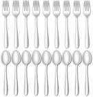 【24 Piece Spoons and Forks Set】Our silverware set Includes 12 forks and 12 spoons, which allow you to replenish the cutlery in time, and help you complete the tableware set when you find that the set is missing forks or spoons. If you are looking for an inexpensive replacement without replacing entire silverware set, then you have come to the right place. 【Food Grade Stainless Steel】This flatware set is made of premium gauge stainless steel, strongly resistant to rust and corrosion, outstanding solid structure without any harmful substance, durable and sturdy for the long reusable service life. 【Exquisite Craftsmanship】Highly mirror polished, smooth and shiny metallic sheen make cleaning effortless, each piece was carefully polished without rough edges and gaps, ensure the safety of your lip. The smooth handles are a pleasure to hold, and each utensil has a medium weight that we think most people will find comfortable. 【Fitting For Many Occasions】Classic fork and spoons set are multifunctional no matter for daily use or storage for festivals and formal events like weddings, parties, celebrations and family dinners, picnics and BBQ. And they also are the perfect choice for restaurants, bistro, cafe, roadhouse and hotel. 【Guarantee of Service】Customer satisfaction is always our priority. If you have any questions about our silverware set, please contact us and we will solve it for you within 24 hours. Product Description Product Features: These flatwares have a simple shape, proper thickness and uniform weight distribution. The simple and graceful design is not only perfect for family service, entertaining, picnics or gatherings, but also widely used in restaurants, Hotels, bistros, etc. Service Support: If you have any questions about our silverware set, please tell us and we will solve it for you within 24 hours. We look forward to giving you a pleasant dining experience. USING INSTRUCTIONS : Please wash the silverware set with warm soapy water after using, make sure it is dry and store in dry place to ensure their durability. Please do not leave them sitting in water for long time, as soaking can permanently damage the stainless steel. Please do not use steel wool or other sharp objects when cleaning to avoid scratches. Highly mirror polished, smooth and shiny metallic sheen make cleaning effortless, each piece was carefully polished without rough edges and gaps. Elegant and ergonomic square design handles, nice weight and balance for holding comfortably by both adults and big children. This forks and spoons set contains 12 forks and 12 spoons, As a tableware reserve, no longer worry about losing silverware.