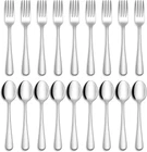 NO WORRYING ABOUT THE MISSING SILVERWARE: They allow you to replenish cutlery in time and help you complete your tableware set when you find that the set is missing forks or spoons. If you’re looking for an inexpensive replacement without replacing entire everyday set, this is the one you need. 24 PCS SILVERWARE SETS: Includes 12 forks and 12 spoons, essential for families or restaurants. The set is also an irreplaceable dining tool whether it is for daily use or for preparing dinners or parties. HIGH QUALITY STAINLESS STEEL: This silverware set is made of 18/10 stainless steel which is very durable, corrosion resistant, nickel free and will not produce residues or odors like other materials. Meanwhile, its sturdiness ensures that it will not bend easily providing you with long - term use. Most importantly, they’re DISHWASHER SAFE. EXCELLENT SHAPE AND DESIGN: Highly mirror polished, smooth edges, comfortable handle. Our flatware set is designed to add more elegance and classical to your table naturally matches well with your existing flatware to elevate everyday meals into a fine dining experience. CLASSY AND COMFORTABLE HANDLE: This smooth and comfortable silverware set provides a good grasp for both adults and older children. It has the right weight and length that makes it be the most handy one to hold. Product Description NO WORRYING ABOUT THE MISSING SILVERWARE. They allow you to replenish cutlery in time and help you complete your tableware set when you find that the set is missing forks or spoons. If you’re looking for an inexpensive replacement without replacing entire everyday set, this is the one you need. You Will Get An Excellent Product To Your Liking! 1. Precision Production for great quality 2. Mirror Polished for elegant style 3. Solid body for no bending or breaking 4. Classic design for comfortable using This set contains 12 forks and 12 spoons, can be used not only for daily use, but also for parties, gatherings, dinners, banquets, and restaurants. As a tableware reserve, no longer worry about losing silverware. The classic design adopts a mirror polished appearance, elegant and modern, and can match any style of tableware and kitchen style you have. The smooth edge can effectively avoid scratching your mouth during use, keep you safe when use. The handle of the silverware has a soft arc, which perfectly matches the grip position of your hand. It is an ergonomic handle that allows you to grasp the silverware very easily, conveniently and effortlessly.