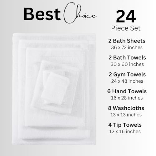 Politica di ritorno Consegna veloce Venditore di fiducia 24 Piece White Bathroom Towels Set - 2 Bath Sheets, 2 Large Bath Towels, 2 Medium Gym Towels, 6 Hand Towels for Bathroom, 4 Washcloths for Face - 100% Mercerized Cotton - Soft & Absorbent Descrizione del prodotto 24 Piece Towel Set: 's 100% Cotton 24 Piece Bath Towel Set includes 2 Bath Sheets (36" x 72"), 2 Large Bath Towels (30"x 60"), 2 Gym Towels (24"x 48"), 6 Hand Towels (16" x 28"), 8 Washcloths (13"x13") & 4 Fingertip Towels (12"x 16"). This carefully curated Cotton Towel Set will fulfill all your towel needs. Superior Quality Towels: Elevate your bathroom with our luxury towels, indulge in the sumptuous softness of our meticulously crafted 100% cotton towels. Beyond their unmatched comfort, savor the outstanding absorbency and enduring durability, fostering a discerning appreciation for the excellence in textile craftsmanship. Versatile Use and Multi-Purpose: Perfect for your bathroom, spa, or gym, these towels are designed for versatility. The large bath sheets make them ideal for luxurious spa days or lounging by the pool, while the smaller sizes cater to everyday use. From the oversized bath sheets and bath towels for full-body comfort to the smaller fingertip towels for delicate use, this set caters to all your daily needs. Perfect Gift: Discover the perfect towel for every heartfelt moment, from the cozy embrace of our 'I need a hug' bath sheets to the delicate touch of our 'just a little dab' fingertip towels. With the assurance of OKEO-TEX certification, you can wrap yourself in plush comfort that's kind to the planet. This 100% Cotton Towel Set will be appreciated by one and all, and is the perfect gift for any occasion. Quick Drying & Easy Care: Our High Quality Towels are quick drying and very easy to maintain. You can machine wash these seperately before the first use to get the best out of these towels. It is recommended to not use fabric softners or bleach to maintain the quality of the towels. Spedizione Ritorna Pagamento Spedizione La spedizione è GRATUITA per tutti gli indirizzi in Italia. Tutto il nostro stock viene spedito da magazzini situati in Italia. Tutti gli ordini verranno spediti entro 24-72 ore dal ricevimento del pagamento. Consulta il nostro feedback per vedere le ottime recensioni sulla VELOCITÀ di spedizione che offriamo. Ritorna Il venditore non accetta resi. Pagamento Al momento accettiamo pagamenti solo tramite gestione pagamenti eBay. Una volta effettuato il pagamento, spediremo la tua spedizione entro 1-3 giorni lavorativi. Si prega di fare riferimento alla scheda "Spedizione" per ulteriori informazioni sulla velocità di spedizione verso la tua destinazione.