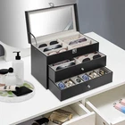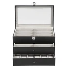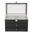 Specification Mount Type: Freestanding, Tabletop Assembly Required: No Number of Tiers: 3 Material: MDF, PU, Glass, Metal, Fleece Process: Edge Wrap Color: Black, Clear, Silver Style: Modern Shape: Rectangle Number of Eyeglasses Compartments: 12 Number of Watches Compartments: 12 Single Glasses Compartment Size (L*W): 15.5*5.5cm/6.1*2.17in Single Watch Compartment Size (L*W): 5*8.5cm/1.97*3.35in Product Size: 33.5*19.3*22.5cm/13.19*7.6*8.86in Package Size: 36*25*25cm/14.17*9.84*9.84in Gross Weight: 4kg/8.82lbs Net Weight: 3.5kg/7.72lbs Package Included 1* Watch Box 24 Slots 3 Layers Watch Box Leather Display Case Organizer Jewelry Storage Box Description This watch box with 24 well-designed compartments (12 compartments for eyeglasses and 12 compartments for watches) brings each of your eyeglasses and watches their own space for excellent storage and display. The drawer design is easy to store and take away, keeping everything organized. It is made of high-class materials to protect your glasses and watches while highlighting your elegant taste, making it ideal for eyeglasses or watch collectors. Key Features Stable and Durable: It is mainly made of high-class MDF and PU, so it is eco-friendly, odorless, anti-corrosion, and rust-resistant , ensuring long-term use. Large-capacity Storage: The box provides 24 independent compartments for storing 12 pairs of glasses and 12 watches, which meets your storage needs for a large number of accessories and keeps things in order. Individual Protection: The inside of each compartment is lined with soft fleece, which effectively prevents glasses and watches from bumping into each other, avoiding scratches and damage. Easy to Access: The box features a clear glass lid on top for easy viewing of the contents, while the metal hinges make it easy for you to open and close the box for daily use and it can support the lid for easy access when you open the product. Dust-proof Design: The closed design helps to block dust from entering and keeps the interior clean and dry, prolonging the life of the accessories. Space Saving: The box adopts a three-tier structure to make full use of space, which saves desktop area (footprint of 13.19*7.6in) and improves storage efficiency. Elegant Appearance: The classic black color, clear lid, silver buckle, drawer handles, and hinges create an elegant and generous atmosphere, adding style to your home. Ideal Gift: Thanks to its practicality, it will make a fine gift for family, friends, and loved ones on Christmas, Father's Day, Mother's Day, birthdays, anniversaries, and holidays. Customer Service: We aim to provide quality products and services. If you have any problems, please feel free to contact us. We will reply and solve the problem for you as soon as possible. Details Metal Lock: The solid buckle provides extra security for the first tier. Smooth Edges: The smooth and burr-free edges enhance the beauty of the product and better care for your skin when cleaning it. Watch Pillow: The soft and supportive pillow keeps your watch in the right shape. Application It can be used to hold glasses, watches, jewelry, rings, bracelets, etc. in stores, homes, checkrooms, and other scenes. It can be a great gift for anniversaries, and graduations, and also ideal for personal collections. Specification Mount Type: Freestanding, Tabletop Assembly Required: No Number of Tiers: 3 Material: MDF, PU, Glass, Metal, Fleece Process: Edge Wrap Color: Black, Clear, Silver Style: Modern Shape: Rectangle Number of Eyeglasses Compartments: 12 Number of Watches Compartments: 12 Single Glasses Compartment Size (L*W): 15.5*5.5cm/6.1*2.17in Single Watch Compartment Size (L*W): 5*8.5cm/1.97*3.35in Product Size: 33.5*19.3*22.5cm/13.19*7.6*8.86in Package Size: 36*25*25cm/14.17*9.84*9.84in Gross Weight: 4kg/8.82lbs Net Weight: 3.5kg/7.72lbs Package Included 1* Watch Box Notes Please check the style and size before purchasing. Please keep it away from moisture. Please wipe it with a soft cloth (not included) for daily care. Please note that this product does not contain glasses, watches, jewelry, and other items as shown in the picture. Please allow the slight color difference caused by the shooting light and 1-3cm error due to manual measurement and make sure you do not mind before ordering. Payment Delivery details Terms of sales About us Contact us Payment We accept ebay payment 。 Fees such as import duties, taxes are not included in the item price or shipping costs. These charges are the buyer's responsibility. Delivery details Shipping: 2-9 working days to: USA Terms of sales We maintain high standards of excellence and strive for hundred percent customer satisfaction. Feedback is very important to us. We hope that you contact us immediately before you give neutral or negative feedback, so that we can address your concerns. It is impossible to address issues if we do not know about them! About us Your satis faction is our ultimate goal. We work hard to earn your trust and future business. Our certified technicians have tested each item before shipping. The unit comes with 1 year limited warranty on all manufacturing defects. a) If you receive a defective item, you may return it or ask for a discount. Please contact us within 14 days after you receive the package. b) What you returned must be intact and in its original packaging as re? u. Customer is responsible for shipping costs of the returned item. c) We will cover the cost of shipping back t with the shipping rate indicated in the registration page. We will send you a new unit or refund the full payment you paid. Thank you. Contact us Business Hour Business Hour: Monday To Friday: 8:30 AM to 5:00 PM (Beijing China time) Due to time zones, our reply to your questions may not be immediately. But within above working time, we will reply your email within 24 hours. If it's non-workdays, please kindly be patient and wait till Monday. Please contact us with ebay message. Please feel free to contac