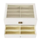 Description This 24-compartment eyeglasses display case with well-designed compartments brings each of your eyeglasses their own space for excellent storage and display. The drawer design is easy to store and take away, keeping everything organized. It is made of high-quality materials to protect your glasses while highlighting your elegant taste, making it ideal for eyeglass collectors and professionals. Key Features Sturdy and Durable: It is made of high-quality MDF, PU, glass, and lint, so it is eco-friendly, odorless, anti-corrosion, and rust-resistant, ensuring long-term use. Large Capacity: The three-tier design and 24 individual compartments provide plenty of space to store your eyeglasses. Each compartment boasts plenty of space (6.3*2.36*2.48in) so it can also be used fo 24-Slot Glasses Storage Display Case Organizer For Sunglasses Eyeglass Box Description This 24-compartment eyeglasses display case with well-designed compartments brings each of your eyeglasses their own space for excellent storage and display. The drawer design is easy to store and take away, keeping everything organized. It is made of high-quality materials to protect your glasses while highlighting your elegant taste, making it ideal for eyeglass collectors and professionals. Key Features Sturdy and Durable: It is made of high-quality MDF, PU, glass, and lint, so it is eco-friendly, odorless, anti-corrosion, and rust-resistant, ensuring long-term use. Large Capacity : The three-tier design and 24 individual compartments provide plenty of space to store your eyeglasses. Each compartment boasts plenty of space (6.3*2.36*2.48in) so it can also be used for storing earrings, jewelry, glasses, watches, etc. Thoughtful Design: The clear glass lid effectively protects your glasses from dust while enabling easy visualization, making it easy for you to choose the glasses that go with your outfit. Exquisite Appearance: The rectangular frame with a white appearance gives this box a natural, delicate, and elegant look that will complement your jewelry and be a beautiful addition to your home. Compact and Lightweight: The compact size (13.39*9.84*7.48in) and lightweight (7.72 lbs) make it an excellent choice for storing glasses while saving desktop space. High Safety: The sturdy lock and key provide improve the security for the top tier. Furthermore, the interior has soft lint to safeguard your glasses from scratches and damage. User-friendly Design: Flip lid design and double drawer design allow you to access and store your eyeglasses easily. Ideal Gift: Thanks to its practicality, it will make a fine gift for family, friends, and loved ones on Christmas, Father's Day, Mother's Day, birthdays, anniversaries, and holidays. Buy with Confidence: We stand behind all our guests and look forward to assisting you with your purchase. It is our pleasure to answer your confusion and questions. The end of the story between us is not "we sell and you buy". Details Smooth Edges: The edges are rounded and burr-free, offering a pleasant user experience and gentle care for your skin. Smooth Handles: These round handles allow you to open or close drawers more easily. Stable Hinge: It offers reliable support during the opening of the glass lid. Application The product is suitable for exhibitions, opticians, homes, professional makeup artists, jewelry collectors, and jewelry organizers to store glasses, jewelry, cufflinks, spare clasps, watches, rings, earrings, and necklaces. Specifications Color: White Material: PU, MDF, Lint, Glass Mount Type: Free Standing, Tabletop Assembly Required: No Shape: Rectangle Number of Tiers: 3 Product Overall Size: 34*25*19cm/13.39*9.84*7.48in Each Compartment Size: 16*6*6.3cm/6.3*2.36*2.48in Package Size: 36*30*30cm/14.17*11.81*11.81in Gross Weight: 4kg/8.82lbs Net Weight: 3.5kg/7.72lbs Package Included 1* Eyeglasses Display Case 1* Key Notes Please check the size carefully before ordering. Please note that this product does not include any jewelry or eyeglasses. Please allow the slight color difference caused by the shooting light and 1-3cm error due to manual measurement, and make sure you do not mind before you order. Payment Delivery details Terms of sales About us Contact us Payment We accept ebay payment 。 Fees such as import duties, taxes are not included in the item price or shipping costs. These charges are the buyer's responsibility. Delivery details Shipping: 2-9 working days to: USA Terms of sales We maintain high standards of excellence and strive for hundred percent customer satisfaction. Feedback is very important to us. We hope that you contact us immediately before you give neutral or negative feedback, so that we can address your concerns. It is impossible to address issues if we do not know about them! About us Your satis faction is our ultimate goal. We work hard to earn your trust and future business. Our certified technicians have tested each item before shipping. The unit comes with 1 year limited warranty on all manufacturing defects. a) If you receive a defective item, you may return it or ask for a discount. Please contact us within 14 days after you receive the package. b) What you returned must be intact and in its original packaging as re? u. Customer is responsible for shipping costs of the returned item. c) We will cover the cost of shipping back t with the shipping rate indicated in the registration page. We will send you a new unit or refund the full payment you paid. Thank you. Contact us Business Hour Business Hour: Monday To Friday: 8:30 AM to 5:00 PM (Beijing China time) Due to time zones, our reply to your questions may not be immediately. But within above working time, we will reply your email within 24 hours. If it's non-workdays, please kindly be patient and wait till Monday. Please contact us with ebay message. Please feel free to contact us if you have any questions. Monday To Friday: 8:30 AM to 5:00 PM (Beijing China time) Due to time zones, our reply to your q