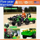 Versatile 3-in-1 Electric Construction Vehicle This ride-on toy features a shovel bucket, digging bucket, and trailer, providing a customizable experience as a bulldozer, excavator, or tractor, delivering an authentic playtime adventure for kids. User-Friendly Control The ride-on tractor offers both manual and parental control options, with children using the pedal to navigate the tractor, switch between high/low speeds, and move forward/backward. Parents can utilize the included 2.4G remote control for effortless and interactive play with their kids. Sturdy and Safe Design With 4 non-slip, shock-absorbing, premium EVA wheels, this electric excavator is designed for various flat surfaces. The soft start function and safety belt ensure a secure and comfortable ride for kids. Entertainment Galore Equipped with built-in stories and music, this ride-on tractor can connect to a mobile phone to play music, providing an educational and entertaining experience for kids. The USB and MP3 ports maximize entertainment possibilities. The bright headlights illuminate dark environments, and the power display indicates the need for timely charging. Product Description Brand Hetoy MPN 24V7AH(12V7AH*2) 550#*2 Age Level 4-7 Recommended Age Range 3 - 8 years Item Weight 74.5 pounds Product Dimensions 95.7 x 25.6 x 35 inches