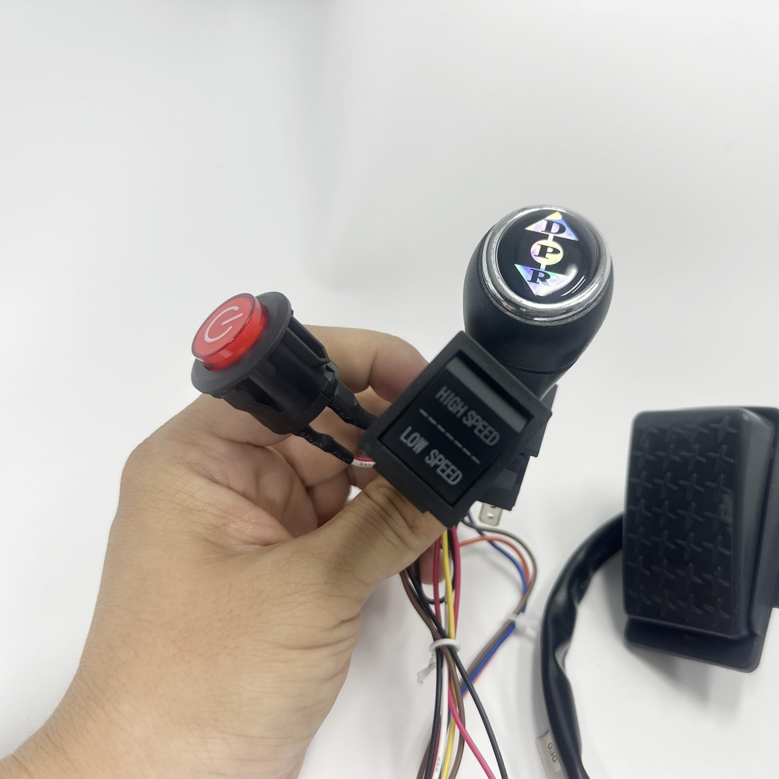 DIY Parts for a 24v Power Wheel Self-Made Children Electric Car Modified,High Power Wires and Switch Kit,with 2.4G Bluetooth Control Box Kit Upgrade for Kids Parts Ride On Car Accessories; DIY Parts for a 24volt Power-Wheel Self-Made Children Electric Car Modified,High Power Wires and Switch Kit,with 2.4G Bluetooth Control Box Kit Upgrade for Kids 24V Ride On Truck Car Cable Assembly; Complete Sets of Accessories:Wires,2.4G Bluetooth Remete Control, Receiver(24V control box) , Pedal,Forward Reverse Switch,High-Low Speed Switch,Pedal Switch,Overload Protector,Charging Port,Power Switch; Products have slow start function, (no extra module needed) prevents sudden acceleration, protecting motors and gearboxes. The 40A controller compatible with high-speed high-power motors, and delivers strong power with stable operation; First use needs to match the frequency,this product has memory function replace battery is unnecessary match code.please refer to the remote control manual(Batteries are not included inside.) A.turn off the car power button; B.Install the battery on the remote control; C.Press the matching button ﹌ key for 3 seconds start match code and do not let go,the first LED flicker; D.turn on the car power button,the first LED lit up,match code success. The package includes: 1x 24v full wiring kit