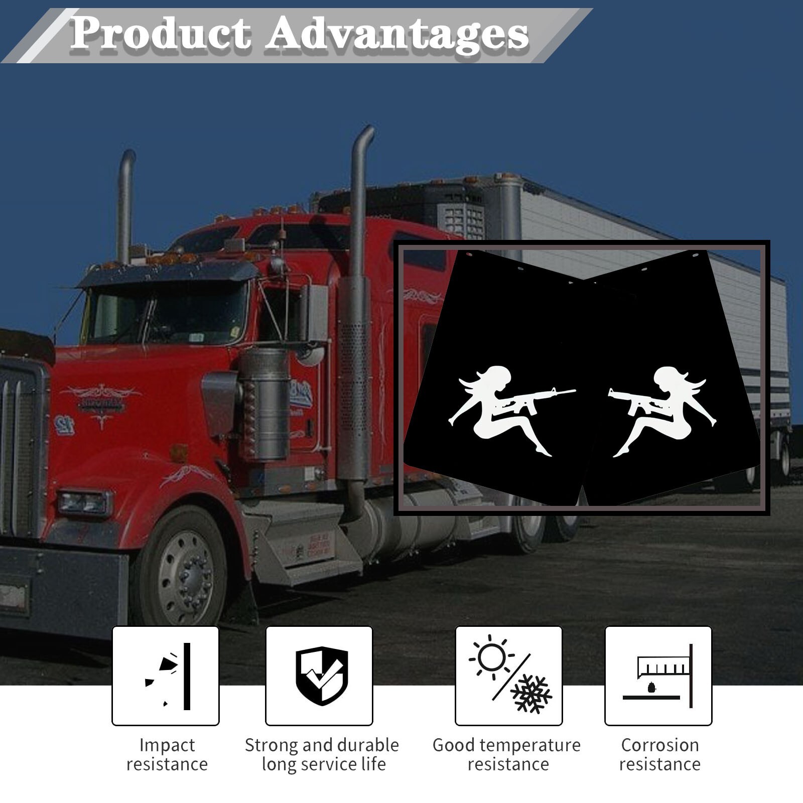 Function: It can reduce muddy water splash and reduce accident rate in rainy days. Usually reduce the noise of the car. When the vehicle is running, the crushed stone and mud on the road will fly out and damage the vehicle due to the crushing of the wheels. Snow-covered roads effectively resist snow and road debris. Material: made of high-strength PE, wear-resistant and durable, ultra-thick molecular structure provides strength and stability, and its own temperature resistance is good, so whether it is exposed to the sun in the hot summer or freezing in the cold winter, the mud skin Will not be easily deformed, it is the best choice to protect car tires and decorate cars. Color: Black Size: 24"x 30" Packaged Included: 4pcs of Mud Flaps Outstanding features: The handsome and tough truck illustrations on the front well decorate the appearance of the truck, and the back has a unique long groove, which can effectively buffer rain erosion and the impact of mud and gravel. Shipment: All items will be shipped out in 1 to 3 Business Days after your payment is verified. Standard Shipping will take 1 to 5 business days. Customizable: We accept customization. You can personalize the size, colors, writings, pattern, and material of the mud flap. You can add a logo, the name of the business to the mud flaps. Then your mud flaps will stand out, unique and can help sell your product to people. The customization should meet with our MOQ. More details, please aks us freely.