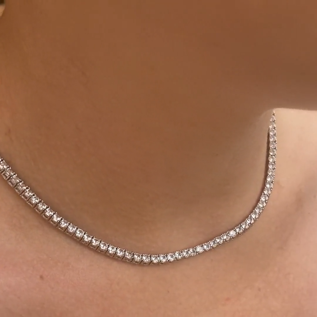 15Ct Round CZ 17" Women's Tennis Necklace in 14k White Gold Over Sterling Silver