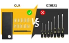 [Magnetic Design]The magnetic screwdriver bits bring convenience and wonderful user experience. Much easier to catch and hold screws. Not easy to slip. [High Hardness & Anti-rust]screwdriver bits made of S2 steel.S2 steel has high hardness, high torque, high abrasion resistance, good toughness so it is ultra-durable. [Aluminum Handle & Case]Aluminum handle with anodic oxidation process and special anti-slip matte surface treatment. Material: S2 alloy steel Size: 66x16x167mm .Nice driver handle, and a wide range of useful bits. .The kit items are stored in a very rugged aluminum storage case, and the bits are secured from chaos with little magnets that assure each stays in its intended storage slot. .The set consists of a very nice aluminum handle and screwdriver bits. .The bits are claimed to be chrome vanadium steel.
