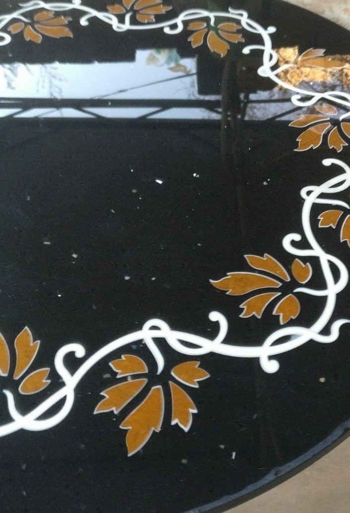 This stunning 24" black tabletop features exquisite handmade marble inlay art—a rare and intricate craft passed down through generations. The delicate floral or geometric patterns, meticulously cut and set by skilled artisans, add timeless elegance to any space. Perfect for home, office, or garden decor, this piece showcases the same breathtaking craftsmanship seen in historic Mughal monuments. A true work of art that elevates any room!