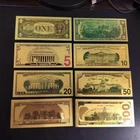 Description Gold foil Seven (8) bills $1 to $100. Shipping Each additional item ships FREE. In ter national bidders are welcome and pay the actual shipping cost.