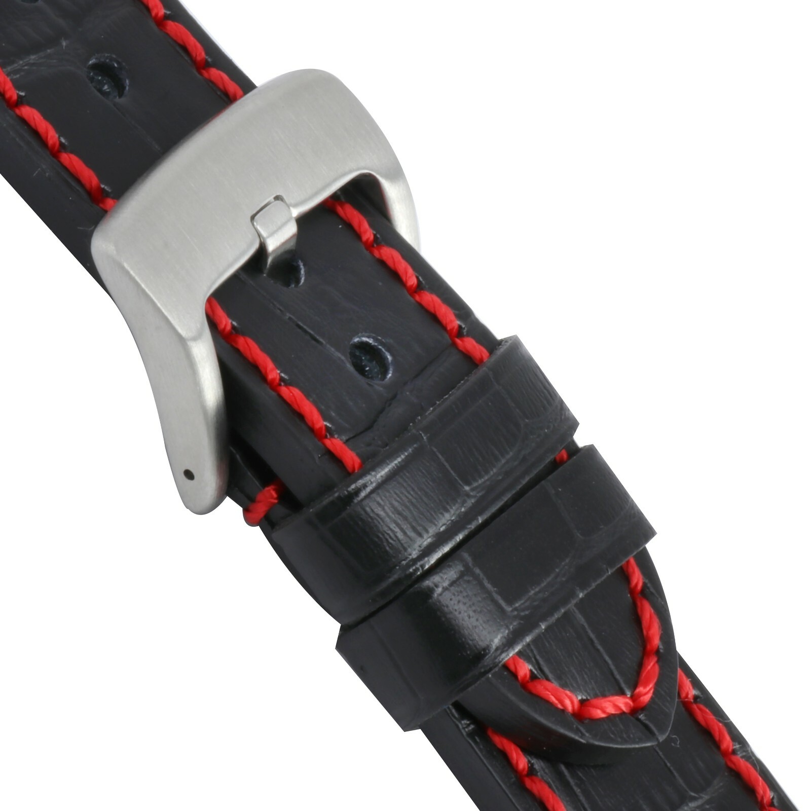 Top Quality Cow Leather Strap fits INVICTA Watches Fits 24mm Lug Size Models Strap Size Width: 24mm (Lugs End) / 24mm (Buckle End) Length: 125mm / 80mm Thickness: 5.5mm (Lugs end) / 5.5mm (Buckle end) Strap Material: Cow Leather with Alligator Grain Buckle: Heavy Duty Swiss 316L Stainless Removable Buckle You are bidding for One ( 1 ) Pair of Grain Genuine Leather Strap with Silver White Brush Stainless Buckle Strap Color Black Leather with Red Stitch Pre-Install with Matching Stainless Spring Bar *** Note *** *** Grain Leather is Genuine Leather But is Not Real Alligator Skin *** ******************************************* ****************************************************************************************
