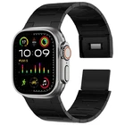 Specification Color Black Special Features Full titanium;DLC Coating Compatibility For Apple Watch Ultra 49mm / Series 10 46mm / Series 9 8 7 45mm / Series 6 5 4 SE2 SE 44mm Clasp Titanium Magnetic Clasp Connector Titanium Connector Titanium Grade Titanium Grade 2 Herring 800+HV Band Width 24mm Band Weight 61g(max) Band Thickness 2.8mm Band Length 210mm Clasp Thickness 5.5mm Wrist Size 170mm to 234mm Feature Lightweight;Corrosion-Resistant;Anti-Allergy Included Components Titanium watch band Warn tips: If you have specific requirements on packaging and components such as minor adjustment links、removal tool、tool pins and instruction, please contact online customer service. Product Description Full Titanium Band VS Titanium Band: All components include links, magnetic clasp, and connectors are crafted from Grade2 titanium, setting our bands apart from others with clasps and connectors made of non-titanium material 24MM Wider Design: The wider watch band best fits the Ultra. Design for any bold soul. Compatible with Apple Watch Ultra 49mm / Ultra 2 49mm / Series 10 46mm / Series 9 8 7 45mm / Series 6 SE 5 4 44mm. Fit wrist size 6.7" to 9.2"(170 to 234mm). We provide a minor adjustment link to adjust the band to fit for your wrist accurately Lightweight and Corrosion-Resistant: 61g(max). Experience the extraordinary benefits of full titanium - our titanium bands are not only lighter but also more corrosion-resistant than non-full titanium alternatives. Dive into the ocean or pool without worry, as our bands are built to withstand various environments Titanium Connectors: CNC high precision craftsmanship and unique titanium connectors ensure a tight and stable connection with original watch interface. Make sure your watch band stays securely attached, providing a seamless and comfortable fit Titanium Magnetic Buckle & Hook and Loop Closure: Sensitive skin? No problem. Our titanium magnetic buckle is an excellent choice, offering comfort without compromising style. Say goodbye to allergies associated with non-full titanium watch bands. Ensuring your watch band is comfortable to wear all day long. Magnetic buckle & hook and loop closure lock your watch easily and securely DLC (Diamond-Like Carbon): Our aerospace-grade titanium bands are not only a perfect match in material and color for the original watch, but also The DLC coating gives it extra scratch prevention, durability and protection, far higher wear resistance than non DLC