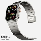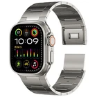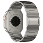 Specification Color TItanium Special Features Full titanium;DLC Coating Compatibility For Apple Watch Ultra 49mm / Series 10 46mm / Series 9 8 7 45mm / Series 6 5 4 SE2 SE 44mm Clasp Titanium Magnetic Clasp Connector Titanium Connector Titanium Grade Titanium Grade 2 Herring 800+HV Band Width 24mm Band Weight 61g(max) Band Thickness 2.8mm Band Length 210mm Clasp Thickness 5.5mm Wrist Size 170mm to 234mm Feature Lightweight;Corrosion-Resistant;Anti-Allergy Included Components Titanium watch band Warn tips: If you have specific requirements on packaging and components such as minor adjustment links、removal tool、tool pins and instruction, please contact online customer service. Product Description Full Titanium Band VS Titanium Band: All components include links, magnetic clasp, and connectors are crafted from Grade2 titanium, setting our bands apart from others with clasps and connectors made of non-titanium material 24MM Wider Design: The wider watch band best fits the Ultra. Design for any bold soul. Compatible with Apple Watch Ultra 49mm / Ultra 2 49mm / Series 10 46mm / Series 9 8 7 45mm / Series 6 SE 5 4 44mm. Fit wrist size 6.7" to 9.2"(170 to 234mm). We provide a minor adjustment link to adjust the band to fit for your wrist accurately Lightweight and Corrosion-Resistant: 61g (max). Experience the extraordinary benefits of full titanium - our titanium bands are not only lighter but also more corrosion-resistant than non-full titanium alternatives. Dive into the ocean or pool without worry, as our bands are built to withstand various environments Titanium Connectors: CNC high precision craftsmanship and unique titanium connectors ensure a tight and stable connection with original watch interface. Make sure your watch band stays securely attached, providing a seamless and comfortable fit Titanium Magnetic Buckle & Hook and Loop Closure: Sensitive skin? No problem. Our titanium magnetic buckle is an excellent choice, offering comfort without compromising style. Say goodbye to allergies associated with non-full titanium watch bands. Ensuring your watch band is comfortable to wear all day long. Magnetic buckle & hook and loop closure lock your watch easily and securely DLC (Diamond-Like Carbon): Our aerospace-grade titanium bands are not only a perfect match in material and color for the original watch, but also The DLC coating gives it extra scratch prevention, durability and protection, far higher wear resistance than non DLC