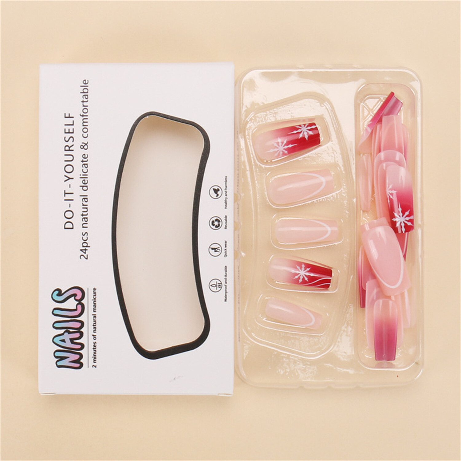 Type : False nails/Press on nails/Stick on nails/Nails Tips 100% New and high quality Color: Multicolored Material: ABS Plastic Package Includ ed: 2 4pcs False N ails with glue Feature: Full cover/Glue Included/Pre-designed/Durable/Detachable 1.This false n ails are e asy to file, paint and apply. It looks natural and nice holding the color without separating or streaking, maki ng your tips magical and stylish. 2.Easy to use according to your option to wear them long or clip them short, easy to trim and file them to any length and shape you like. Mutiple application: The false nails are great for learners at all stages,suitable for nail salons and diy nail art at home,easy to remove,which are wonderful gifts for your wife,girlfriend,mother or sisters,as well as they are great fro parties,weddings,costume ball,Halloween,Christmas,etc. Shipping: Usually order will be shipped within 5-7 business days after payment finished. How to ap ply? 1. Trim the sides and cuticle area for an accurate fit. 2. Select the correct size of fake nails for each finger. 3. Apply our glue sticker on your nails. 4. Put on the fake nails. 5. Press on them for 10 seconds. 6. Art manicure finished. How to remove? 1. Soak in warm water for about 2 minutes and adhesive tabs can be removed easier. 2.Gently peel off the fake nails from the sides. Note: The nail piece is measured by hand in kind, there may be a little gap, hope for understanding! If there is any concern,please contact us again anytime.