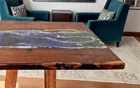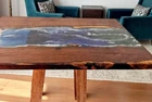 Table Size: 24"x15" Inches Stand Size: 28.5" Inches Tall Experience the pinnacle of craftsmanship with our Handmade Wood and Epoxy Resin Trading Desk, designed to enhance your workspace with a blend of modern elegance and artisanal quality. Each desk is crafted from premium Walnut wood, enriched with vibrant pigments that create a stunning visual effect. The result is a unique, functional work of art that serves as both a statement piece and a practical surface for your trading or gaming needs. Key Features: Premium Materials: Our desks are crafted from high-quality wood and epoxy resin, combining durability with artistic beauty. The rich texture of the wood is accentuated by the glossy resin, making each desk a one-of-a-kind masterpiece. Customizable Options: Choose from a variety of stand colors, including Black, Silver, or Golden, to perfectly complement your interior decor. Additionally, we offer customization for size and shape, allowing you to create a desk that fits your exact specifications. Contemporary Design: The resin river design adds a contemporary touch to your space, ensuring your desk stands out as a unique focal point in any room. Perfect Gift Idea: This desk is an ideal gift for those who appreciate exceptional craftsmanship and modern design. Its stylish appearance and functional design make it a thoughtful and impressive gift. Live Edge Detail: We use the finest live edge wood slabs, sourced from both domestic and exotic species, ensuring each desk has a natural, organic feel. The live edge detail adds a rustic charm, making each piece truly unique. UV Resistant Resin: The high-quality resin used in the tabletop not only enhances the beauty of the desk but also offers exceptional strength and durability. It’s UV resistant, ensuring that the vibrant colors and glossy finish will last for years to come. Ordering Information: Made to Order: Each desk is meticulously handcrafted upon order, ensuring a personalized touch and the highest attention to detail. Worldwide Shipping: We offer global shipping, with buyers responsible for any applicable customs and import taxes. Please note that due to the use of raw wood, each desk may vary slightly from the one shown in photos, adding to its uniqueness. Thank you for visiting!