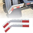 Size: 24"x3"; Material: Aluminum; Mounting: bolt on. Package Included: 2 PCS of Aluminum reflective panels Superiority: Reflect the surrounding light at night, so as to warn passers-by and drivers.Improve the safety of driving. The mud flap reflector made of heavy duty aluminum,with higher performance and longer lifespan.Simple installation, no need to punch or cut.Professional installation are always recommended. Specifically designed for the semi truck and trailer mud flaps/mud flap hangers.