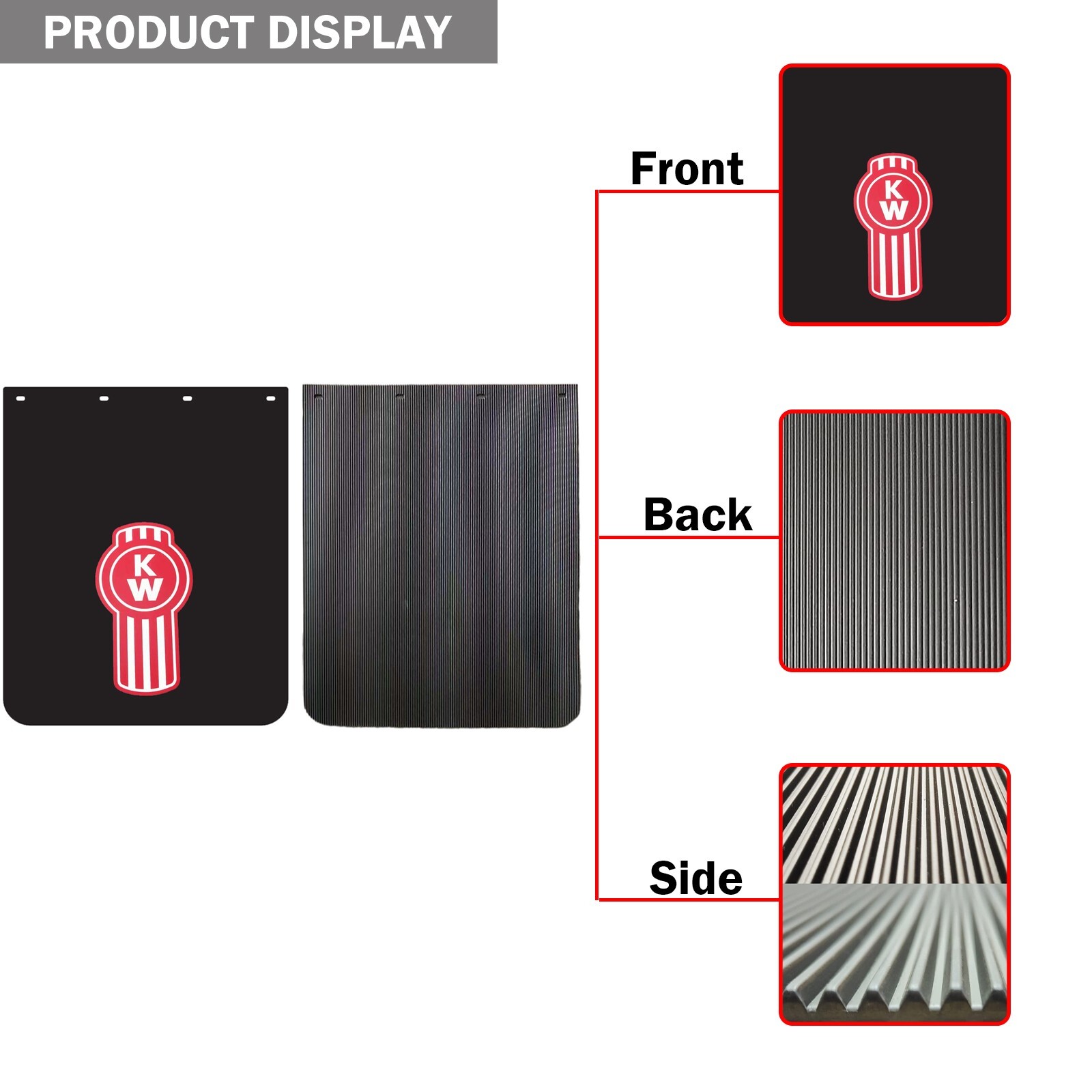 Size: 24’’x30’’, 3/16’’ thickness. 2PCS Mud Flaps These 24"x30" Semi Trucks Mud Flaps are heavy-duty mudguards designed specifically for trailer trucks. Made of durable plastic in a sleek black color, they come in a set of 2 pieces for easy installation on the rear of your vehicle. The mud flaps are washable and car wash safe, making them convenient to maintain. With a universal fitment and bolt-on attachment type, these mud flaps provide protection for your truck while also adding a stylish painted finish to your vehicle. Made by the manufacturer with a 1-month warranty, these mud flaps are a performance part that ensures your truck stays clean and protected on the road. Notes: Instruction not included. Professional installation is always recommended. All dimensions are measured by hand, there may be small deviations. Please check compatibility table, item specifics, part numbers as well as the product description to ensure this is the correct part for your vehicle. Payment: We accept different payment method. Please make payment via "ebay" checkout button in order to prevent delay in your shipment. Shipping The package will use the United States standard shipping , and we will process the order within 1 working day after the buyer completes the payment. Orders from Saturdays, Sundays or holidays will process on next business day and will be ship within 24 hours. Return We offer 30 days return policy. Please contact us within 30 days from the date you receive your order if you have any issues with the product and would like to return. All returned items MUST BE in the original packaging and you MUST PROVIDE us with the shipping tracking number, specific reason for the return, and your eBay ID. We will refund YOUR FULL WINNING BID AMOUNT, upon receipt of the item in its original condition and packaging with all components and accessories included, AFTER BOTH Buyer and Seller cancel the transaction from eBay. OR, you may choose to have a replacement. Contact Us If you feel that you got an item that is different from what you ordered or if it arrived damaged or if you are not satisfied with the item please email us and we will love to work with you in resolving any issues.