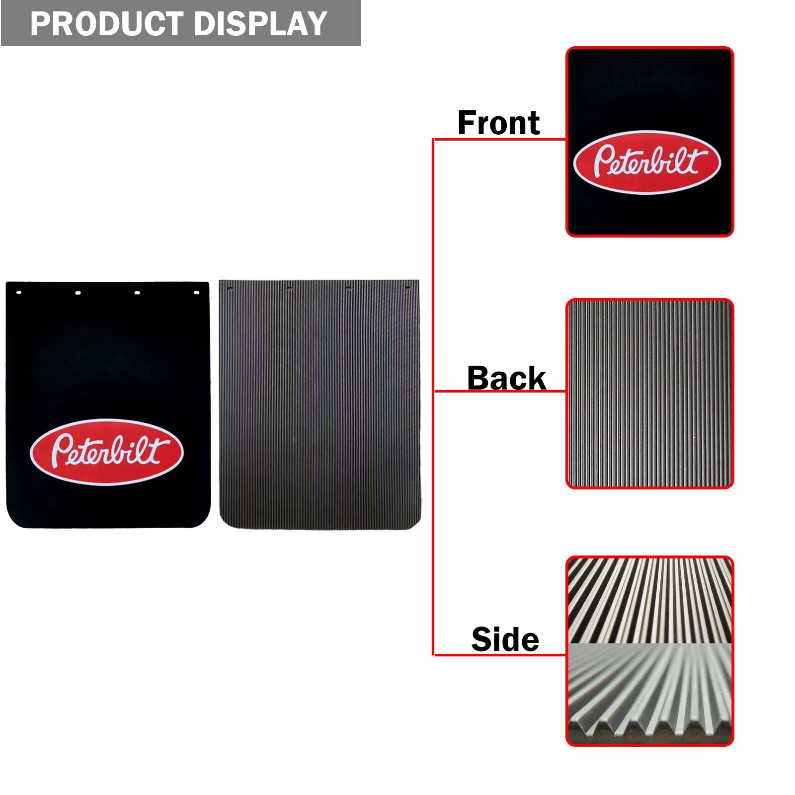 Size: 24’’x30’’, 3/16’’ thickness. 2PCS Mud Flaps These 24"x30" Semi Trucks Mud Flaps are heavy-duty mudguards designed specifically for trailer trucks. Made of durable plastic in a sleek black color, they come in a set of 2 pieces for easy installation on the rear of your vehicle. The mud flaps are washable and car wash safe, making them convenient to maintain. With a universal fitment and bolt-on attachment type, these mud flaps provide protection for your truck while also adding a stylish painted finish to your vehicle. Made by the manufacturer with a 1-month warranty, these mud flaps are a performance part that ensures your truck stays clean and protected on the road. Notes: Instruction not included. Professional installation is always recommended. All dimensions are measured by hand, there may be small deviations. Please check compatibility table, item specifics, part numbers as well as the product description to ensure this is the correct part for your vehicle. Payment: We accept different payment method. Please make payment via "ebay" checkout button in order to prevent delay in your shipment. Shipping The package will use the United States standard shipping , and we will process the order within 1 working day after the buyer completes the payment. Orders from Saturdays, Sundays or holidays will process on next business day and will be ship within 24 hours. Return We offer 30 days return policy. Please contact us within 30 days from the date you receive your order if you have any issues with the product and would like to return. All returned items MUST BE in the original packaging and you MUST PROVIDE us with the shipping tracking number, specific reason for the return, and your eBay ID. We will refund YOUR FULL WINNING BID AMOUNT, upon receipt of the item in its original condition and packaging with all components and accessories included, AFTER BOTH Buyer and Seller cancel the transaction from eBay. OR, you may choose to have a replacement. Contact Us If you feel that you got an item that is different from what you ordered or if it arrived damaged or if you are not satisfied with the item please email us and we will love to work with you in resolving any issues.