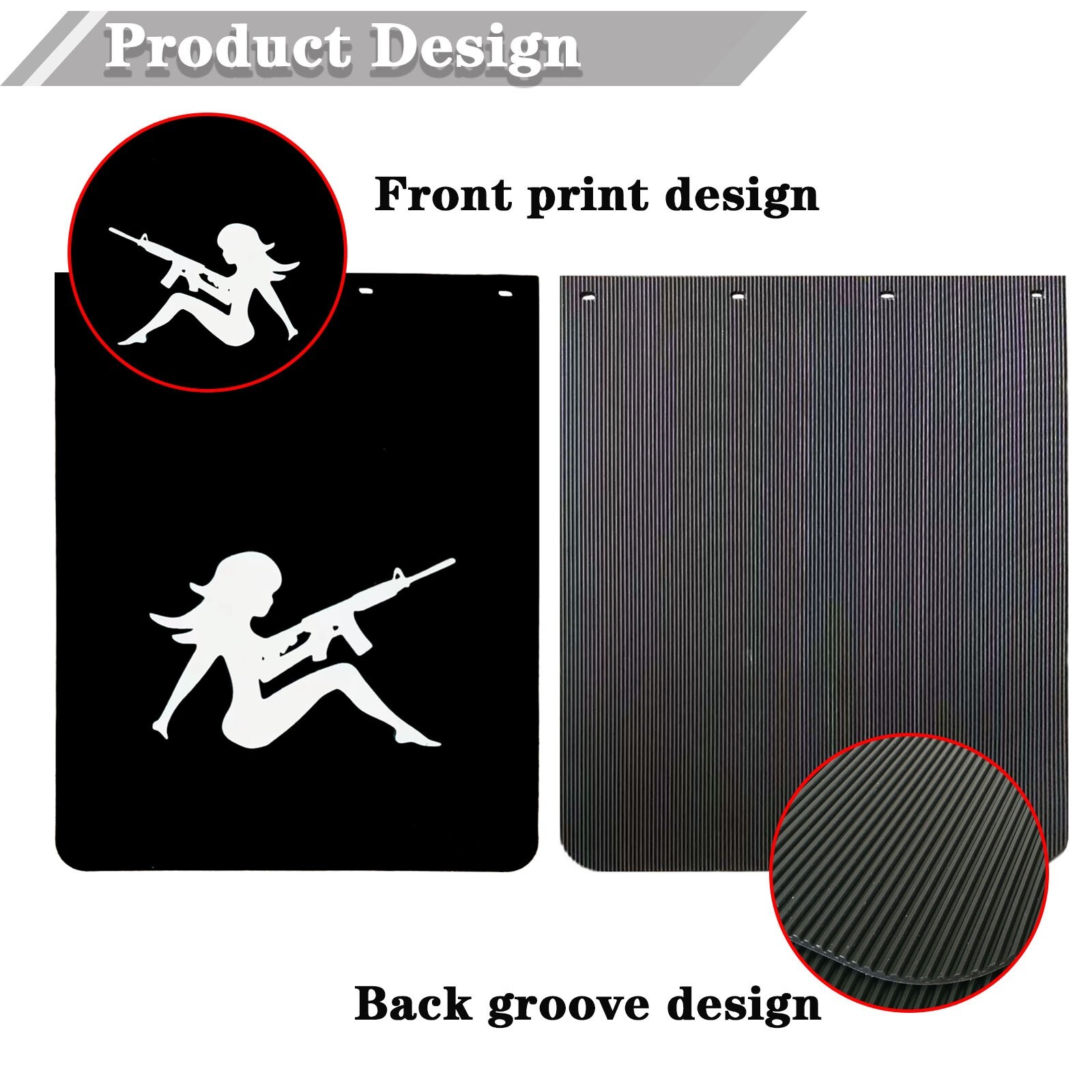 Function: It can reduce muddy water splash and reduce accident rate in rainy days. Usually reduce the noise of the car. When the vehicle is running, the crushed stone and mud on the road will fly out and damage the vehicle due to the crushing of the wheels. Snow-covered roads effectively resist snow and road debris. Material: made of high-strength PE, wear-resistant and durable, ultra-thick molecular structure provides strength and stability, and its own temperature resistance is good, so whether it is exposed to the sun in the hot summer or freezing in the cold winter, the mud skin Will not be easily deformed, it is the best choice to protect car tires and decorate cars. Color: Black Size: 24"x 30" Outstanding features: The handsome and tough truck illustrations on the front well decorate the appearance of the truck, and the back has a unique long groove, which can effectively buffer rain erosion and the impact of mud and gravel.  Package Included: 2 Pcs of Mud Flaps 24"x30"  Shipment:  All items will be shipped out in 1 to 3 Business Days after your payment is verified. Standard Shipping will take 1 to 5 business days.   Customizable:  We accept customization. You can personalize the size, colors, writings, pattern, and material of the mud flap. You can add a logo, the name of the business to the mud flaps. Then your mud flaps will stand out, unique and can help sell your product to people. The customization should meet with our MOQ. More details, please aks us freely.