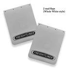 The product is a set of 24x30'' mud flaps designed for semi-trucks and trailers. Made of durable white plastic, these mud flaps are easy to install and provide all-weather protection for your vehicle. With universal fitment and a rear placement on the vehicle, these mud flaps are washable and offer reliable shielding from dirt, rocks, and other debris. Perfect for keeping your vehicle clean and protected during off-road adventures or everyday use.