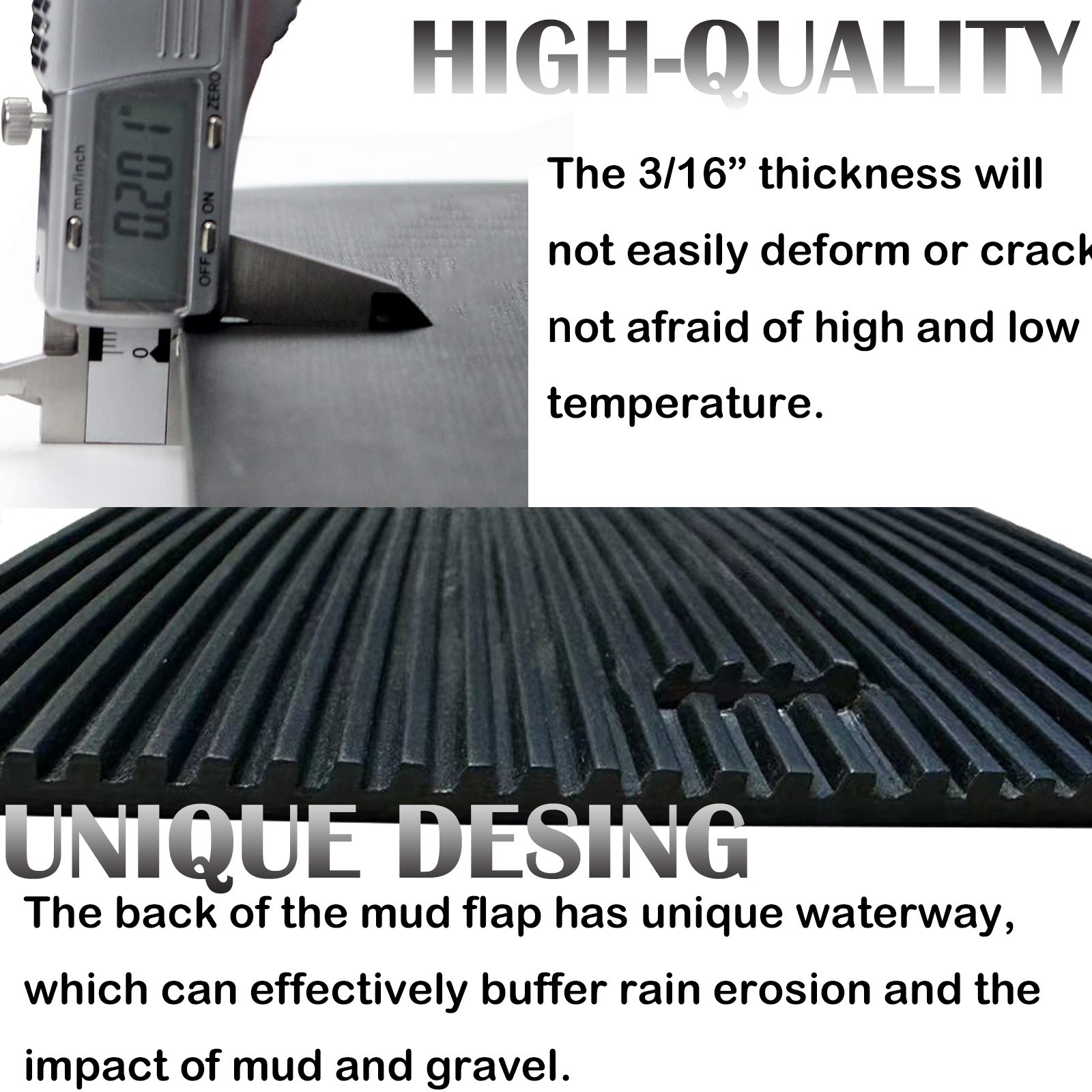 Premium 24x30 in Universal Fender Flares for Semi Trucks Trailers Durable Protection for Heavy-Duty Vehicles Engineered for truckers, these 24x30 inch fender for semi-trucks, trailers, and heavy-duty vehicles. With a rugged 1/5-inch thickness, they withstand road debris, gravel, and harsh weather conditions while maintaining flexibility to absorb impacts. Key Features: ✔ Universal Fit - Pre-drilled mounting holes accommodate most major truck/trailer brands ✔ HDPE Material - UV-resistant polymer blend won't crack or fade in extreme temperatures (-40°F to 220°F) ✔ Safety Enhanced - Reduces spray/splash by 70% to improve visibility for following vehicles ✔ Easy Installation - Easy to install, with reserved space for direct installation without wasting time Specifications: ▪ Material: High-density polyethylene (HDPE) with rubberized coating ▪ Dimensions: 24"W x 30"L x 0.2"T (actual thickness: 1/5 inch) ▪ Weight: 8 lbs per pair ▪ Color: Black ▪ Package Includes: 2x Mud flaps