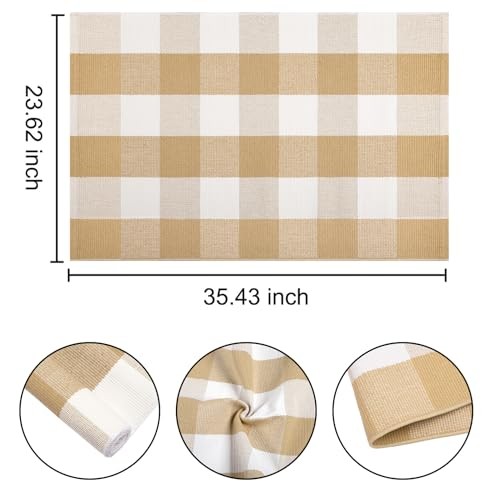 30 Days Return Policy Fast Delivery Trusted seller Front Door Mat Outdoor 24''x35''Khaki and White Washable Entryway Rugs Cotton Farmhouse Layered Doormat for Hello/Welcome Entryway,Porch,Bedroom,Bathroom Product Description 【Soft Comfortable Material】:Made of 45% Cotton+ 45% polyester+10% viscose fabric, it is soft and comfortable and is well-made for long-lasting use, smooth and relaxed. The color of our buffalo rugs will stay bright and will not fade to another color. 【Classic Farmhouse Rug】:A unique design with a buffalo textured weave pattern to create a beautiful porch decoration for your house, which makes your home so warm and classic. Fashion and modern, chic, and simply look area rugs are a good way to elevate your home decor. 【Perfect Size for Welcome Doormat】: Our Layered Door Mats fit combined with a hello welcome doormat, adding a different brilliance to your porch! This farmhouse outdoor rug is great for everyday use. 【Easy to Clean】:It can be washed by laundry machines, hand-washed, or use vacuum cleaners. Please wash the front door rug separately in cold water with mild detergent, no bleach available, and dry it with low-setting tumble dryers, or air dry. Don’t put it in the dryer. Please note that put the doormats in a laundry bag when washing the rug with a washing machine. 【Various Occasions】: With a modern pattern is a fantastic choice for farmhouse decor or modern decor, indoor outdoor rugs are enough for a welcome doormat, front door mat, indoor outdoor rug, entryway rug, bedroom rug, kitchen rug and mat, living room rugs, bathroom rug. Shipping Returns Payment Shipping Shipping is FREE to all addresses other than APO/PO boxes in the lower 48 states. All our stock ships from US-based warehouses. Shipped via USPS or UPS (depending on location and package weight) Unless stated otherwise, all orders will ship within 24-72 hours of your payment being processed. Check our feedback to see the great reviews of FAST shipping we offer. Returns As our valued customer, we will do our best to make sure the product you receive arrives to you on time and as expected. If you are not satisfied with your purchase, please contact us within 30 days of receiving your order to process a return. Payment We currently accept payment via eBay managed payments only. Once payment is cleared, we will dispatch your shipment within 1-3 business days. Please refer to the "Shipping" tab for more information regarding shipping speed to your destination.