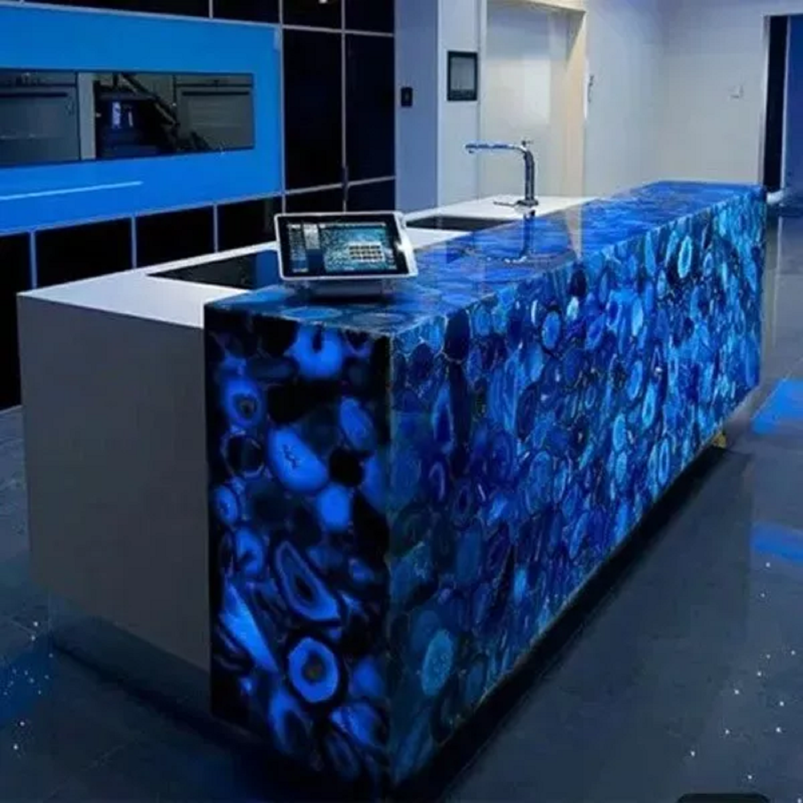 Welcome To Laxmi Handicrafts Centre Unique Blue Agate Stone Handmade Dining Table Top It is beautiful for decorative Handmade Art adds a touch of Royal Elegance, Enhancing the Decors of your Home.. Product information Size: 36"x24" Material: Natural Agate Stone & Handmade Arts Color: As Photo Finished: Polished Note: Agate can be crafted into Natural stone Table Top for Dining Room, Living Room , available at competitive prices. These Table Top come in a variety of unique designs that are hard to find elsewhere. Each Table Top is handmade in Agra, India. Products are shipped via FedEx or DHL, with free door-to-door delivery. Any local taxes, customs duties, or VAT are the responsibility of the buyer at the destination. All parcels are dispatched with careful packaging and full insurance, covering all potential risks. If you’re seeking something custom-made, let us know, and we’ll create it according to your design, size, and shape. Agate Tabletops: A Unique and Elegant Choice Agate is a stunning, cryptocrystalline silica rock primarily composed of chalcedony, featuring interwoven microgranular quartz. Known for its fine texture and vibrant color variations, agate is commonly found in volcanic and metamorphic rocks. It has been admired for centuries, especially in ancient cultures like the Minoans, who used it for decorative and functional purposes. In modern times, agate’s unique patterns and colors make it a luxurious material for creating elegant tabletops, adding a natural yet sophisticated touch to any space. Types of Agate for Tabletops Agate comes in various types, each offering distinct patterns and colors that can enhance the aesthetic appeal of tabletops: Botryoidal Agate : Featuring rounded, bubbly formations, this type creates a distinctive texture that can add a touch of elegance to any table surface. Fire Agate : With its iridescent layers, fire agate provides a rich, fiery glow that can make tabletops stand out with their unique light reflections. Moss Agate : Known for its green inclusions resembling moss, this variety adds a natural, earthy element to a tabletop, bringing a bit of the outdoors inside. Dendritic Agate : The tree-like patterns in dendritic agate create a striking visual, often in dark, contrasting colors, ideal for a dramatic and artistic table design. Laguna Agate : Renowned for its vibrant, banded layers of color, laguna agate can offer a bold and beautiful appearance, making it a popular choice for statement tabletops. Color Variations in Agate Tabletops Agate is available in a vast array of colors, making it highly customizable for tabletops: Red Blue Green Brown White Black Purple The wide spectrum of hues, often with intricate banding and natural patterns, allows each agate tabletop to be a unique piece. The specific colors are influenced by mineral inclusions and geological conditions during agate formation, providing a range of stunning looks for any interior style. Uses of Agate in Tabletops Agate is becoming an increasingly popular material for luxury tabletops, offering both beauty and functionality. Here are some of the key reasons agate is chosen for tabletops: Aesthetic Appeal : Agate tabletops are admired for their stunning, natural colors and intricate patterns, making them a striking addition to living rooms, dining areas, and offices. Durability : Agate’s hardness ensures that tabletops made from this stone are resistant to scratches and wear, making them long-lasting and practical for everyday use. Uniqueness : Since agate forms in nature, no two agate tabletops are alike. Each piece is one-of-a-kind, making it a truly personalized addition to any home or office space. Luxury and Elegance : Agate tabletops offer a touch of luxury and sophistication, elevating the overall decor of any room with their vibrant colors and intricate patterns. Versatility : Agate tabletops can be used in a variety of settings, from contemporary to traditional, complementing a wide range of interior design styles. Agate tabletops not only serve as functional surfaces but also as stunning works of natural art, bringing timeless elegance to any room they inhabit. Note - If You Are Looking Something Customize , Let Us Know We Will Make For You As Per Your Design, Size & Shape. Shipping & Packaging For shipping we use DHL & FedEx Export packing sealed wooden, crate with foam plastic straps outside. If there is any Local Tax, Custom Duties or Vat at the destination, it will be paid by the buyer. ........................................ Wish you a very happy day & Happy shopping