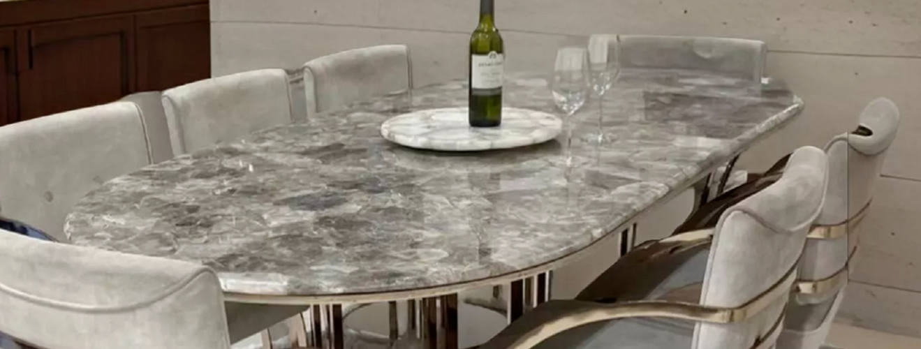 Welcome To Laxmi Handicrafts Centre Unique Labradorite Stone Handmade Dining Tabletop It is beautiful for decorative Handmade Art adds a touch of Royal Elegance, Enhancing the Decors of your Home.. Product information Size: 24"x36" Inches Material: Natural Labradorite Stone & Handmade Arts Color: As Photo Finished: Polished Note: Labradorite can be crafted into Natural stone Table Top for Dining Room, Living Room , available at competitive prices. These Table Top come in a variety of unique designs that are hard to find elsewhere. Each Table Top is handmade in Agra, India. Products are shipped via FedEx or DHL, with free door-to-door delivery. Any local taxes, customs duties, or VAT are the responsibility of the buyer at the destination. All parcels are dispatched with careful packaging and full insurance, covering all potential risks. If you’re seeking something custom-made, let us know, and we’ll create it according to your design, size, and shape. Labradorite/Agate/Epoxy Resin Table Tops We are a Manufacturer & Exporter specializing in Labradorite Stone, Agate, and Epoxy Resin Table Tops. Our diverse collection includes a wide range of tabletop designs such as Round, Octagonal, Rectangular (Dining Table Tops), Square Table Tops, Chess Table Tops, Taj Mahal Table Tops, and Custom Design Table Tops. We also offer matching Marble Table Top Bases and Stands, ideal for dining tables, coffee tables, center tables, conference tables, chess boards, reading tables, bar tables, garden tables, side tables, corner tables, and other decorative indoor and outdoor pieces. These stunning stone table tops are highly durable and suitable for both indoor and outdoor settings, with Labradorite offering an added advantage of resistance to stains and extreme temperatures. About Labradorite Stone: Labradorite is a stunning, iridescent gemstone known for its vibrant play of colors, often displaying brilliant flashes of blue, green, yellow, and gold. A type of feldspar, Labradorite is formed in igneous rocks and is highly valued for both its beauty and durability. Its remarkable optical effect, known as labradorescence, gives it an ever-changing array of colors that make it a popular choice for luxurious table tops and decorative elements. Labradorite comes in several varieties, each with its unique characteristics: Rainbow Labradorite: Known for its brilliant array of colors, ranging from blues and greens to golds and oranges, this is the most commonly used variety for decorative pieces and table tops. Blue Labradorite: This variety features strong blue flashes and is often prized for its deep, ocean-like hue. It can range from light to dark blue, making it a striking choice for high-end designs. Black Labradorite: A more understated yet elegant variety, Black Labradorite often showcases subtle iridescent flashes of color against a dark, almost black background. It has a more refined, sophisticated aesthetic. Golden Labradorite: With its warm yellow to golden hues, this variety offers a unique, rich color palette that is perfect for creating standout table tops. Spectrolite Labradorite: Originating from Finland, Spectrolite is a rare and highly prized form of Labradorite, known for its intense and vibrant colors, including red, green, and blue, which can change depending on the angle of the light. The captivating color play and robust durability of Labradorite make it an exceptional choice for creating elegant, functional, and visually striking table tops. Whether used indoors or outdoors, these table tops are both beautiful and built to last. Uses of Our Marble & Agate Table Tops: Our handmade inlay art marble and agate table tops add a royal ambiance to any home or garden decor. These elegant and durable table tops are perfect for: Dining tables, coffee tables, side tables, end tables, and corner tables. Stylish installations in hotels, villas, and homes for interior and exterior decorations. Use as hall flooring or walling in corridors, vestibules, or apartments. Note - If You Are Looking Something Customize , Let Us Know We Will Make For You As Per Your Design, Size & Shape. Shipping & Packaging For shipping we use DHL & FedEx Export packing sealed wooden, crate with foam plastic straps outside. If there is any Local Tax, Custom Duties or Vat at the destination, it will be paid by the buyer. ........................................ Wish you a very happy day & Happy shopping