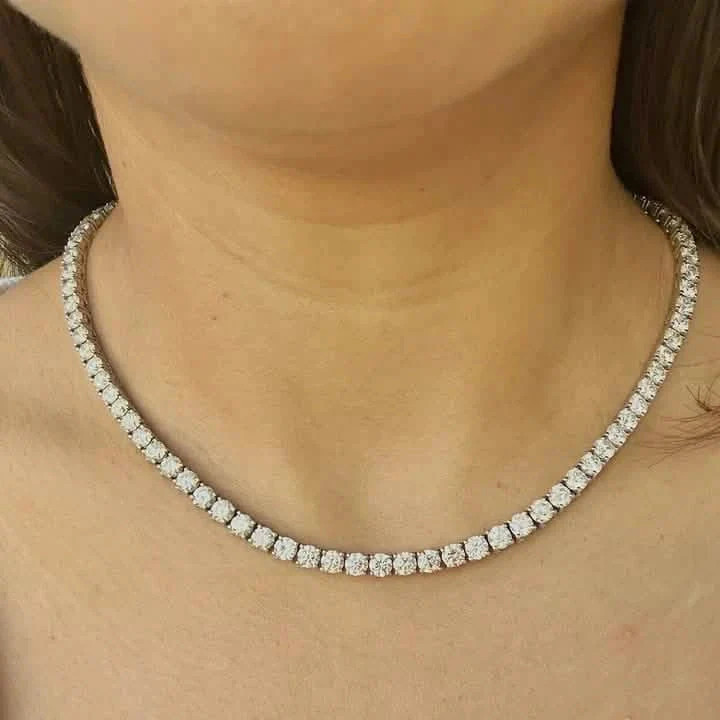 Title 25 Carat Round Genuine Lab Grown Diamond Tennis Necklace 16" PRODUCT DESCRIPTION Description: Elevate your jewelry collection with our stunning 25 Carat Round Lab Grown Diamond Tennis Necklace, expertly crafted in solid 14K white gold. Designed to deliver a brilliant, luxurious sparkle, this necklace features round lab-created diamonds set in a classic prong style, creating a timeless, dazzling look that enhances any outfit or occasion. The 16-inch chain sits elegantly on the neckline, combining comfort with sophistication. The secure box clasp ensures it stays in place while providing easy wear and removal. Key Features: Premium Material: Solid 14K White Gold for lasting shine and durability Total Carat Weight: 25.00 Ct of VS clarity, D/F color lab-grown diamonds Main Stone: Round Lab-Created Diamonds, Cut Grade Excellent Chain Length: 16 inches, perfect for a classic, refined look Closure: Secure Box Clasp Style: Tennis Necklace, ideal for layering or wearing solo Occasions: Anniversary, Birthday, Wedding, Graduation, Special Celebrations Gift-Ready: Comes in elegant Oliver Navy packaging for gifting Authenticity: Verified through eBay GIA for assurance Care Instructions: To preserve the brilliance and finish of your necklace, avoid contact with water, chemicals, and prolonged exposure to heat or moisture. Experience the perfect combination of luxury, style, and craftsmanship. Add this 25 Carat Lab Grown Diamond Tennis Necklace to your collection today and enjoy a bold, timeless accessory! Item Specifics: Condition: New without packaging Pendant Shape: Round Main Stone Creation: Lab-Created Closure: Box Main Stone Color: White Metal: White Gold (14K) Total Carat Weight: 25.00 Ct Necklace Length: 16 in Main Stone: Diamond Brand: Oliver Navy Setting Style: Prong Diamond Clarity Grade: VS Diamond Color Grade: D/F Cut Grade: Excellent Style: Tennis Base Metal: White Gold Type: Necklace Country/Region of Manufacture: United States Country of Origin: United States Powered by