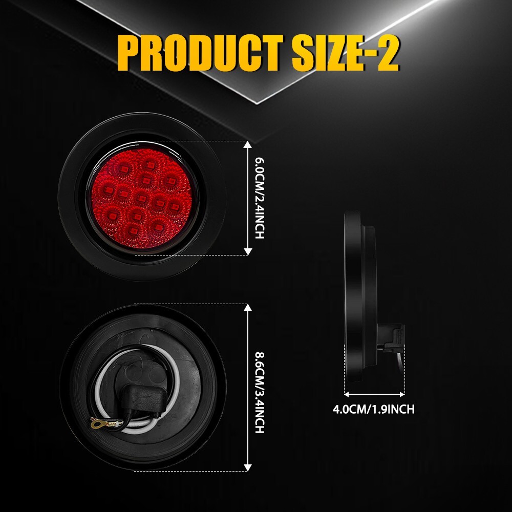 Fit for: Universally fit any vehicles with DC 12V-24V Such as Semi Truck & Trailer, Service Truck, Bus, Service Van, Utility Truck, Parade Float, Horse Trailer, Utility Trailer, Pick Up Truck, UTE, UTV. Specifications: Product Material: ABS+PC Lens Color: Amber/Red Light Color: Amber/Red Wiring Mode: White wire: Negative Black wire: Positive Voltage: 12-24V DC Connector Type: Pigtail Mounting Type: Flush-Mount Waterproof Grade: IP67 Lifespan: 50,000h+ Features: *High Brightness Each LED tail light is bright enough and energy-saving. *Superior Quality 2.5 Inch DOT Round Amber Red LED Trailer Marker Lights with Grommet for Truck Fit for: Universally fit any vehicles with DC 12V-24V Such as Semi Truck & Trailer, Service Truck, Bus, Service Van, Utility Truck, Parade Float, Horse Trailer, Utility Trailer, Pick Up Truck, UTE, UTV. Specifications: Product Material: ABS+PC Lens Color: Amber/Red Light Color: Amber/Red Wiring Mode: White wire: Negative Black wire: Positive Voltage: 12-24V DC Connector Type: Pigtail Mounting Type: Flush-Mount Waterproof Grade: IP67 Lifespan: 50,000h+ Features: *High Brightness Each LED tail light is bright enough and energy-saving. *Superior Quality Made of high-quality material to ensure its low energy consumption, good waterproof and shock resistance. *Waterproof The tail light has an IP67 waterproof rate, which works even under extreme conditions such as rain and snow. *Wide Application This pair of LED tail lights can be used in any vehicle with DC 12V-24V, such as Semi Truck & Trailer, Service Truck, Bus, Service Van, Utility Truck, Parade Float, Horse Trailer, Utility Trailer, Pick Up Truck, UTE, UTV. *Warm Notice Please check the detailed information of the product carefully before purchasing. Packaging Include: 4/8 x 2.5" Round 13 LED Clearance Side Marker Light 4/8 x 2.5" Round Black Grommet 4/8 x 2-Pin 90° Plugs connector Item Specifics Brand AUXITO Voltage 12 V Wattage 1 W Features DOT-Certified SAE-Certified Sealed Assembly Lighting Technology LED Material ABS PC Type Tail Light Assembly Universal Fitment Yes Manufacturer Warranty 1 Year Payment Returns DESCRIPTION PAYMENT SHIPPING RETURN POLICY CONTACT US Shop Category Store Home LED Headlight ◈ H4 ◈ H13 LED FogLight ◈ H10 / 9145 / 9140 LED Reverse Light ◈ T15/921/W16W LED Side Marker Light Car Parts & Accessories Tail Light assemblies Other Hot Item Picture New List Item Headlight Headlamp Amber Left Right Pair Assembly For 2016-22 Toyota Tacoma USD 105.99 Headlights Assembly Pair For 2004 2003 2002 Honda CRV C-RV 2.4L Chrome Housing USD 99.99 NOx Sensor 12718676 Position 2 Fit For GMC Chevrolet SILVERADO 2500 3500 2017-19 USD 99.99 Headlight Set Left & Right Fit2001-2004 Nissan Frontier NI2502130 NI2503130 USD 69.99 For 2002 2003 2004 Honda CR-V Headlights Lamps OE Replacement Assembly L+R Pair USD 99.99 Help & Info Payment Policy Shipping Policy Return Policy FAQ About Us 2.5 Inch DOT Round Amber Red LED Trailer Marker Lights with Grommet for Truck Fit for: Universally fit any vehicles with DC 12V-24V Such as Semi Truck & Trailer, Service Truck, Bus, Service Van, Utility Truck, Parade Float, Horse Trailer, Utility Trailer, Pick Up Truck, UTE, UTV. Specifications: Product Material: ABS+PC Lens Color: Amber/Red Light Color: Amber/Red Wiring Mode: White wire: Negative Black wire: Positive Voltage: 12-24V DC Connector Type: Pigtail Mounting Type: Flush-Mount Waterproof Grade: IP67 Lifespan: 50,000h+ Features: *High Brightness Each LED tail light is bright enough and energy-saving. *Superior Quality Made of high-quality material to ensure its low energy consumption, good waterproof and shock resistance. *Waterproof The tail light has an IP67 waterproof rate, which works even under extreme conditions such as rain and snow. *Wide Application This pair of LED tail lights can be used in any vehicle with DC 12V-24V, such as Semi Truck & Trailer, Service Truck, Bus, Service Van, Utility Truck, Parade Float, Horse Trailer, Utility Trailer, Pick Up Truck, UTE, UTV. *Warm Notice Please check the detailed information of the product carefully before purchasing. Packaging Include: 4/8 x 2.5" Round 13 LED Clearance Side Marker Light 4/8 x 2.5" Round Black Grommet 4/8 x 2-Pin 90° Plugs connector Payment Returns All rights reserved. On Feb 2, 2025 at 10:00:22 PST, seller added the following information: