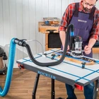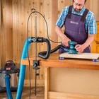 2-1/2” Blue Shop Vacuum Hose Extension Kit: This incredibly stretchy 2-1/2'' dust vacuum hose extends up to 12 ft. in length, then collapses back into a compact 2 ft. stack for storage. The dust collector hose weighs 30% less than previous versions and is offered in a blue translucent color. Helps To Prevent Tangling & Tripping: This dust collection hose allows you to reach most areas of your shop, without the hassle of a long, cumbersome hose. As you move closer to your shop vacuum, it retracts to take up excess slack, which helps prevent tangling and tripping. Fits In Standard Shop Vac: With the two included swivel fittings, our dust collection hose can easily connect to your shop vacuum, optional accessories, and many dust ports. Durable Material: The shop vac hose is made of an amazingly elastic, flexible polymer which you can apply for a long time and stretches from approximately 2' to 12' in length. What’s Included? This dust collection hose with fittings kit includes (1) 2-1/2'' Diameter. Shop Vac Extension Hose (expands from 2' to 12'), (2) 2-1/2 Hose Clamps, and (2) Swivel fittings.