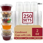 250 Sets 2 oz Small Plastic Containers with Lids Jello Shot Cups Portion Bulk π΄ 2 oz Clear Condiment Cups with Lids - 250 Set Perfect for salad dressings , dipping sauces , and meal prep ! π No Spill Design π§ Lids seal with a secure click, keeping contents fresh and spill-free! πͺ Built to Last π BPA-free and crack-resistant for worry-free transport and use. π¦ Convenient & Stackable ποΈ Stackable and disposable for easy storage and quick access. π― Multi-Purpose Use π₯ Great for snacks, portion control, medications, sauces, and dips! π‘ Bulk Value π Perfect for restaurants, parties, and meal prepβ keep portions fresh longer ! π¬ Whatβs Included: β 250 portion cups with lids (2 oz each) β airtight, BPA-free, and stackable. Thank you for choosing VIP Value Vault ! π 8.43 inches x 13.15 inches x 5.51 inches. Weight: 2.27 lb Item model number RL17-10096-250 Style 2 oz | 250 Pack Capacity 2 ounces Number of Sets 250 Batteries Included? No Specific Uses For Product Portion Control, Condiments Unit Count 250.0 Count Batteries Required? No Item Volume 2 Fluid Ounces Material Plastic Package Dimensions 13.15 x 8.43 x 5.51 inches Material Type Free BPA Free Item Package Quantity 1 Included Components 250 Containers, 250 Lids Is Dishwasher Safe No Number Of Pieces 500 Item Weight 2.27 pounds Material Feature Disposable Special Features Disposable, Air Tight, Recyclable, Stackable Special Feature Disposable, Air Tight, Recyclable, Stackable Part Number RL17-10096-250 Color Clear Container Shape Round Shape Round Recommended Uses For Product Snacks, dips, salad dressing, jello shots, lunch box, portion control, dieting, medication portions, samples, condiment cups Product Care Instructions Hand Wash Only Size 2 oz | 250 Pack