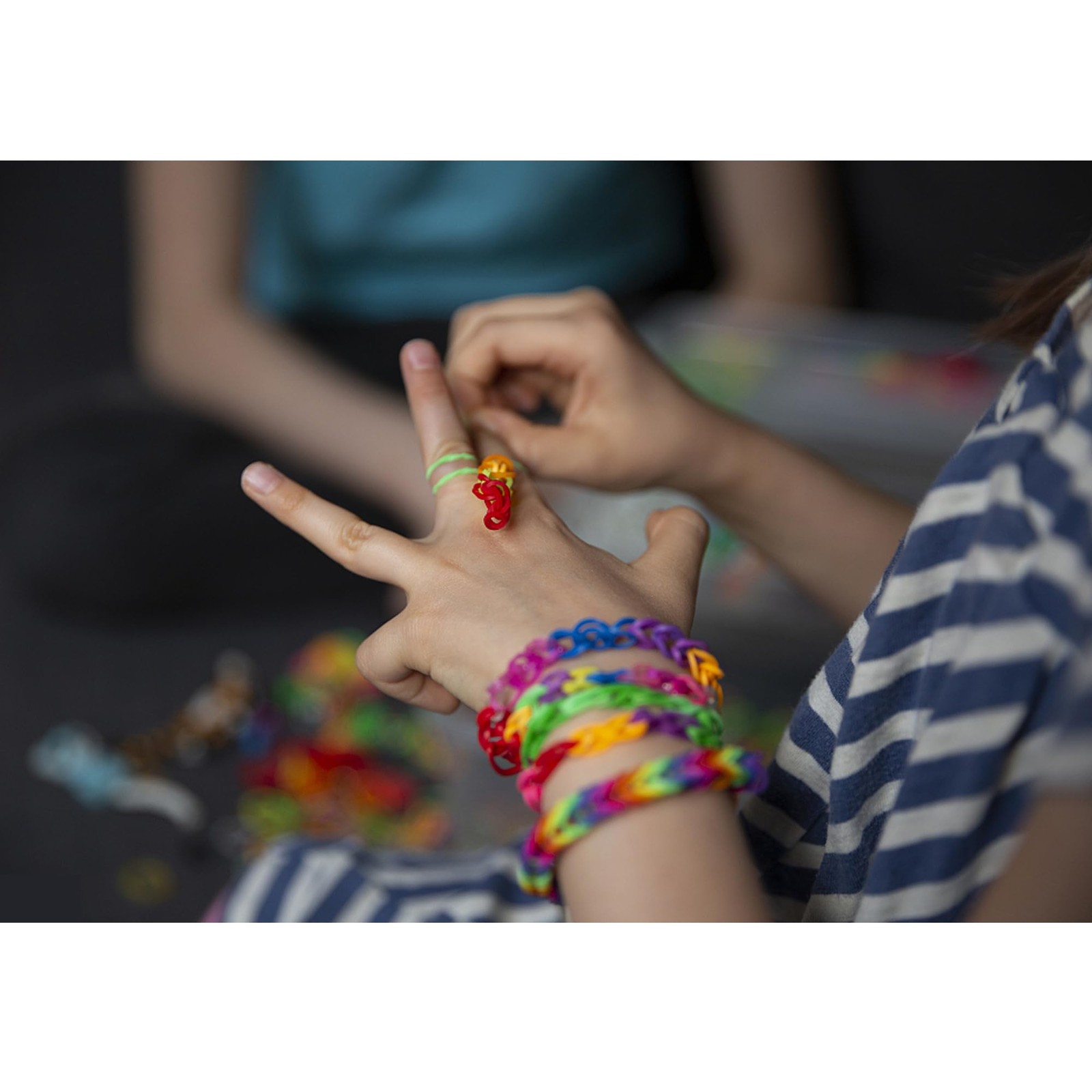 ❥ . This rubber band set comes with all the necessary DIY tools, including 2500+webbing, 96 S-shaped clips, 40 colored beads, 40 letter beads, 15 accessories, 2 zipper hooks, 3 crochets, 5 flower beads, 5 lobster clasps, 5 fruit beads ❥ . This rubber band set comes with all the necessary DIY tools, including 2500+webbing, 96 S-shaped clips, 40 colored beads, 40 letter beads, 15 accessories, 2 zipper hooks, 3 crochets, 5 flower beads, 5 lobster clasps, 5 fruit beads ❥ . This loom kit is equipped with a storage case to store all rubber bands, each color is stored in a separate compartment to keep them neat, and it can also help children develop habits to organize and organize their own things, it is amazing bracelet making kit for you absolutely. ❥ . Colorful Rubber bands are a great gift for Christmas, Easter, Valentine, New Year, birthday, etc. It's can satisfy children’s inner curiosity, exercise creativity, and cultivate self-confidence. Can improve interaction skills and team awareness. Children can feel the joy of success in the process of DIY toys. ❥ . Enhanced Parent-Child Interaction,The Colorful Loom Bands Set also develop children's intelligence, effectively improve their imagination and teamwork ability, and especially deepen the communication and interaction with parents. ❥ . Rubber band bracelet kit,loom bracelet making kit,rubber bands for bracelets,loom bands,bracelet making kit ,rubber band bracelets。