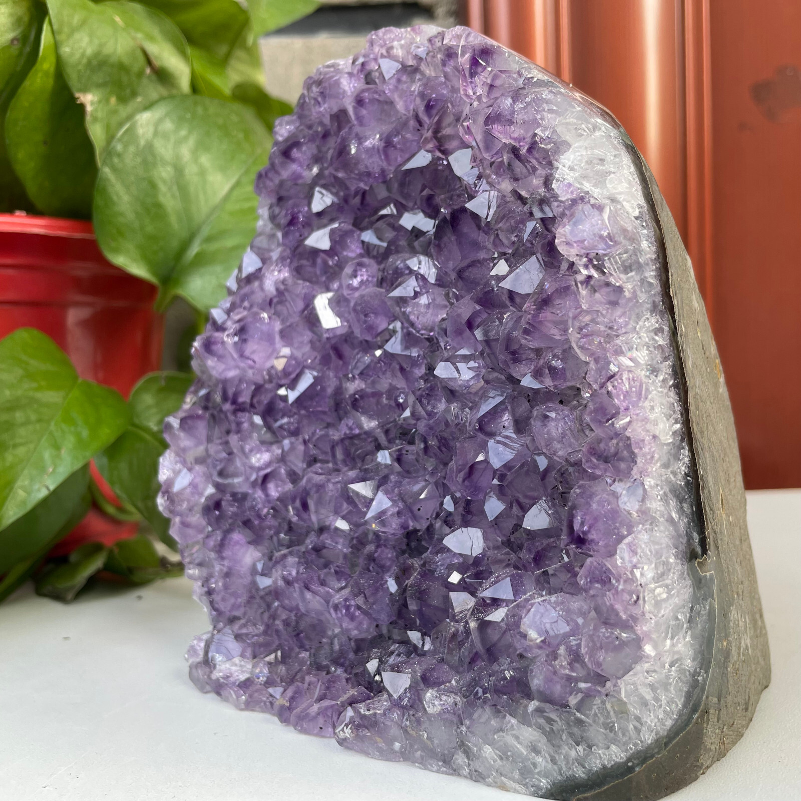 I just received a beautiful amethyst, identical to the photo for a good price. Well packaged for transport In addition, the delivery was very fast. very responsive seller. I can only recommend, despite the weight which was much lower than the one announced, almost 150 g less but the size was identical to the description. I will not hesitate to do business with you again. I recommend this seller +++