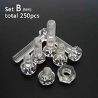 There are 250pcs assortment set high quality acrylic M3/M4 round pan phillips head Screws and hex nuts Package: Material: acylic Size: Screw size: A(thread diameter) x B(total length) Metric thread diameter: M3(3mm) / M4 (4mm) Metric thread pitch: M3(0.5mm) / M4(0.7mm) On Dec 14, 2024 at 18:30:25 PST, seller added the following information: