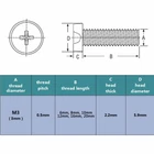 There are 250pcs assortment kit high quality metric thread nylon M3 round pan phillips head Screws and hex nuts Package: Each set include 150pcs screw and 100pcs nut Description: Material: nylon Screw size: A(thread diameter) x B(total length) Metric thread diameter: M3 (3mm) Metric thread pitch: 0.5mm On Dec 14, 2024 at 19:28:31 PST, seller added the following information: